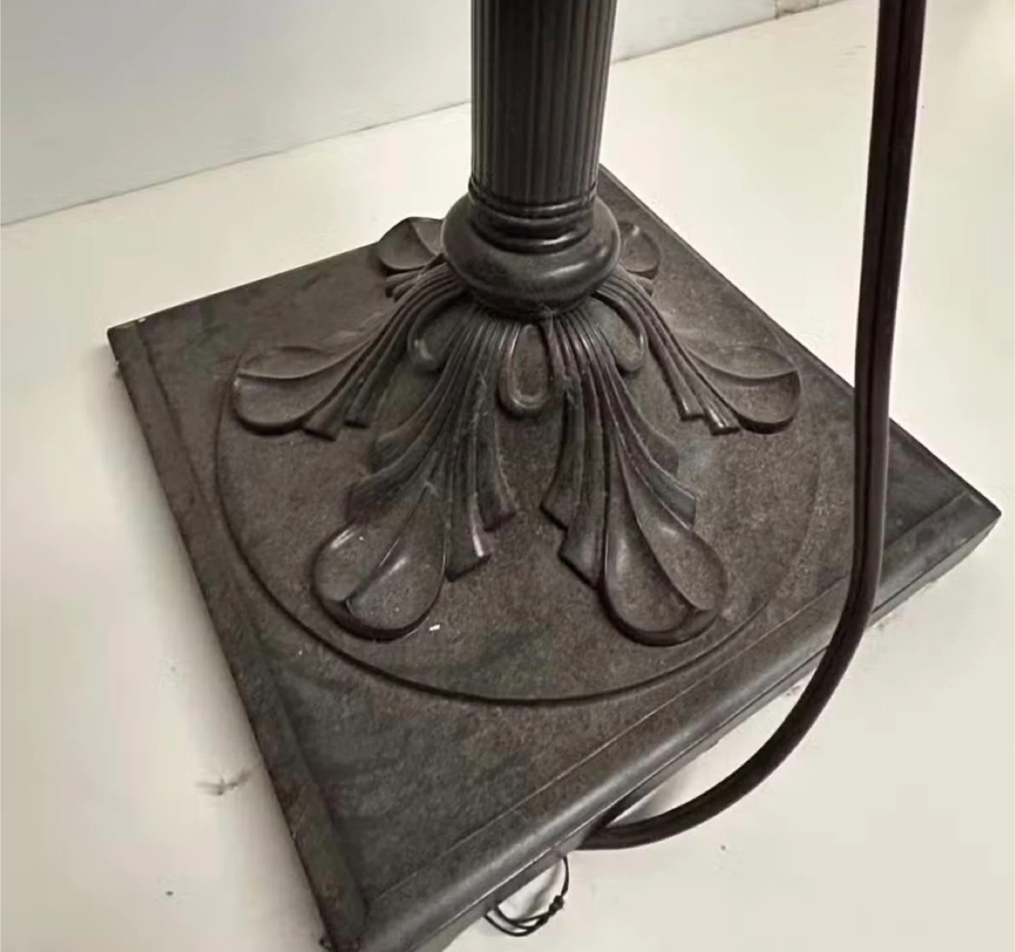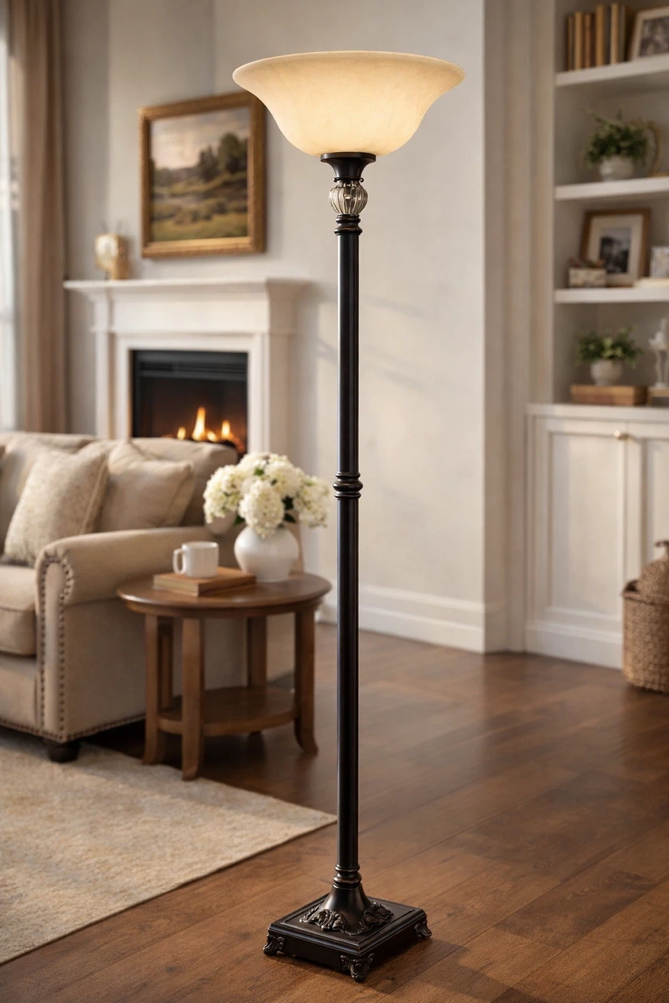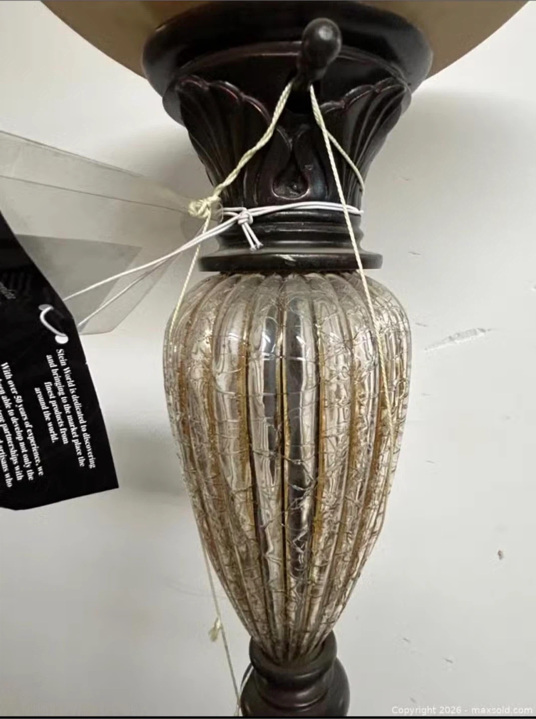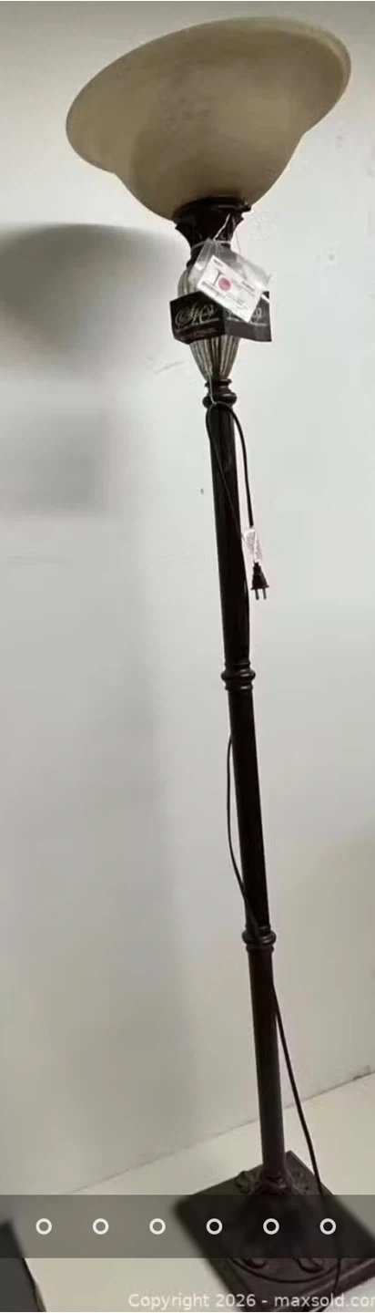 This Stein World torchiere floor lamp features a ribbed crackle glass accent. Lamp height is 70.5 inches. It's made in China and perfect for adding ambient lighting to a living room.