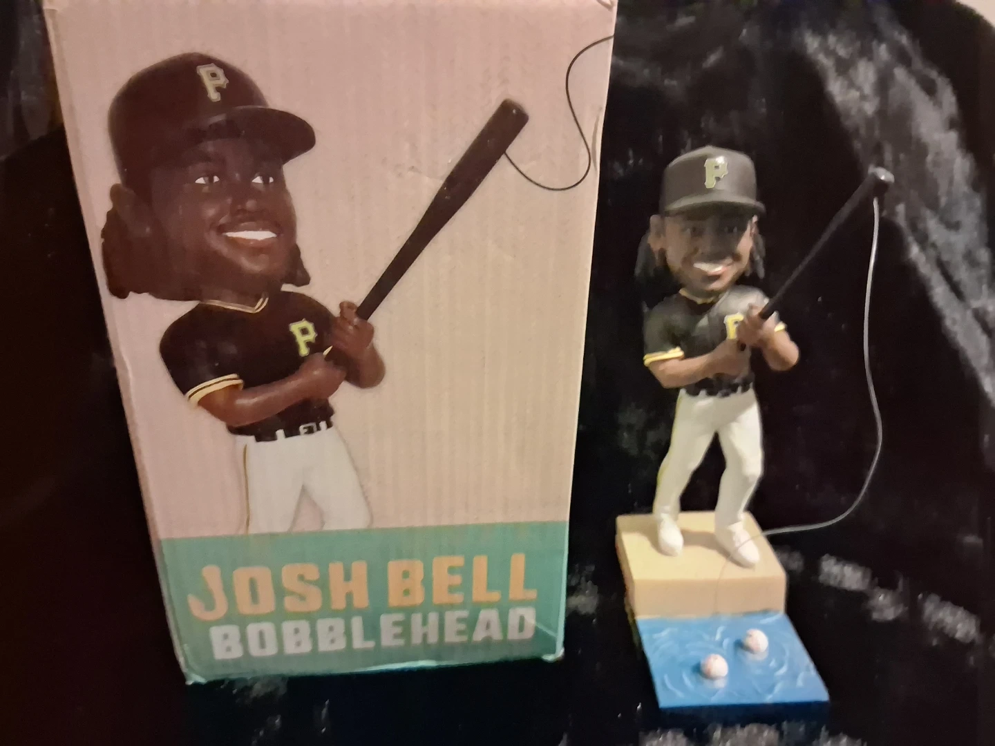 This is a Josh Bell bobblehead. It's from the Pittsburgh Pirates. It comes with its original box. This bobblehead would be a great addition for any Pirates fan!