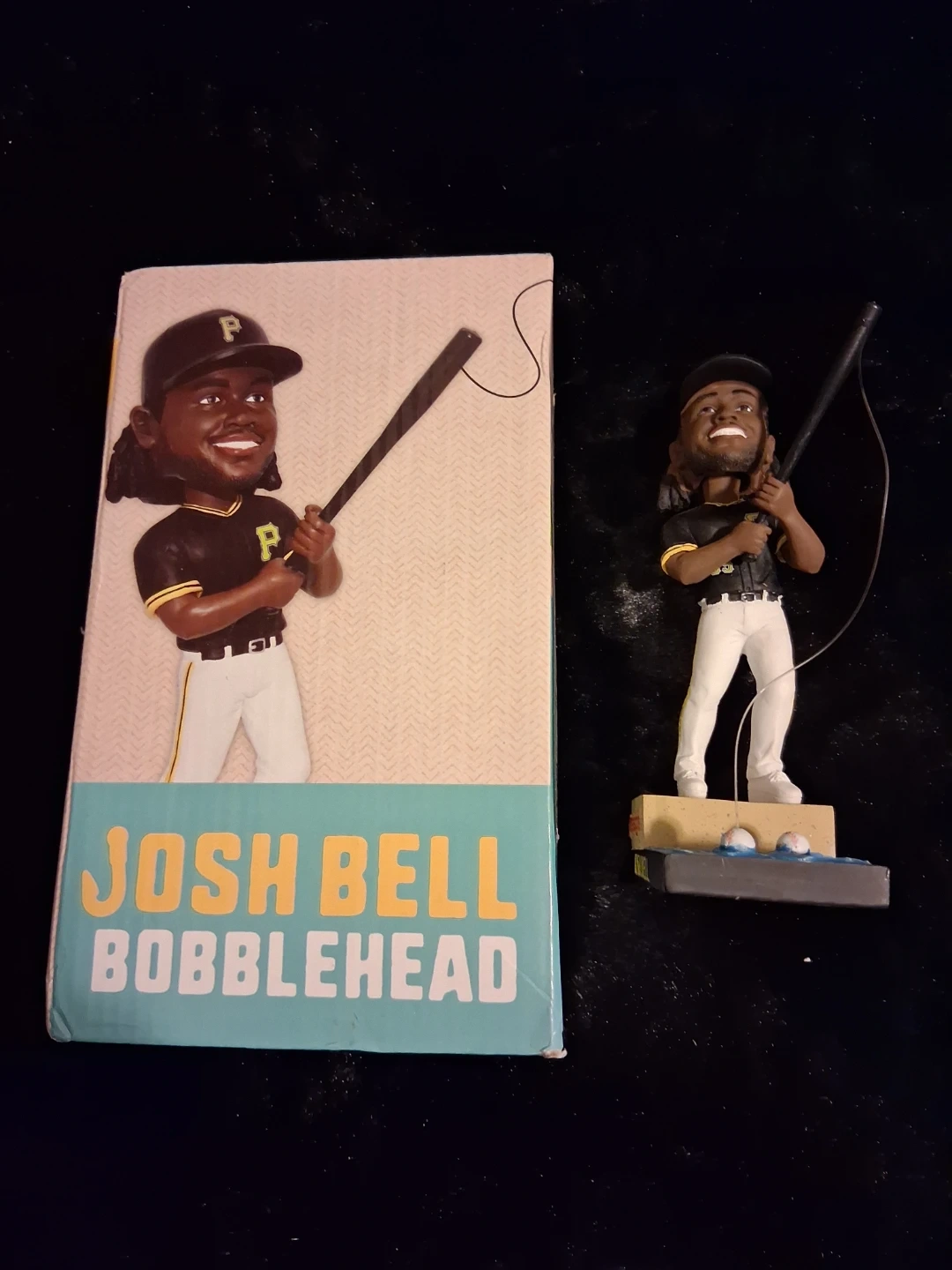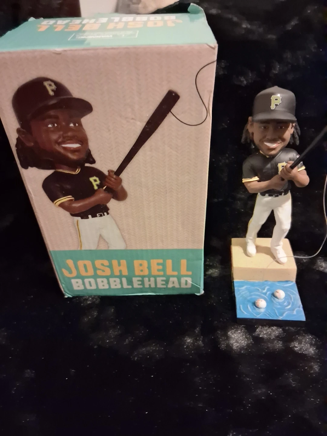 This is a Josh Bell bobblehead. It's from the Pittsburgh Pirates. It comes with its original box. This bobblehead would be a great addition for any Pirates fan!