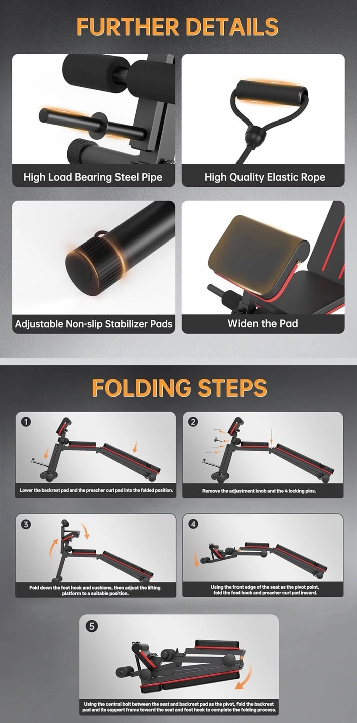 【Foldable Design & After-Sales Support】This workout bench foldable design allows quick setup and compact storage, making it easy to store in bedrooms, garages, basements, or home gyms