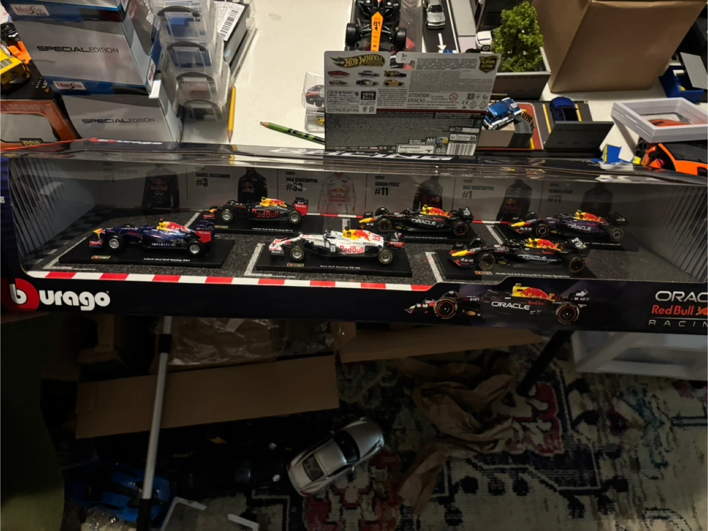 This Burago set includes multiple Formula 1 diecast model cars from various teams. The cars are 1:43 scale and are detailed replicas. This set is suitable for collectors and racing enthusiasts aged 3 and up.