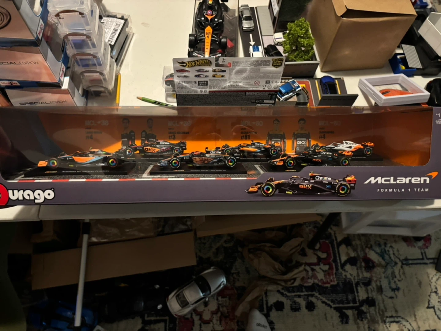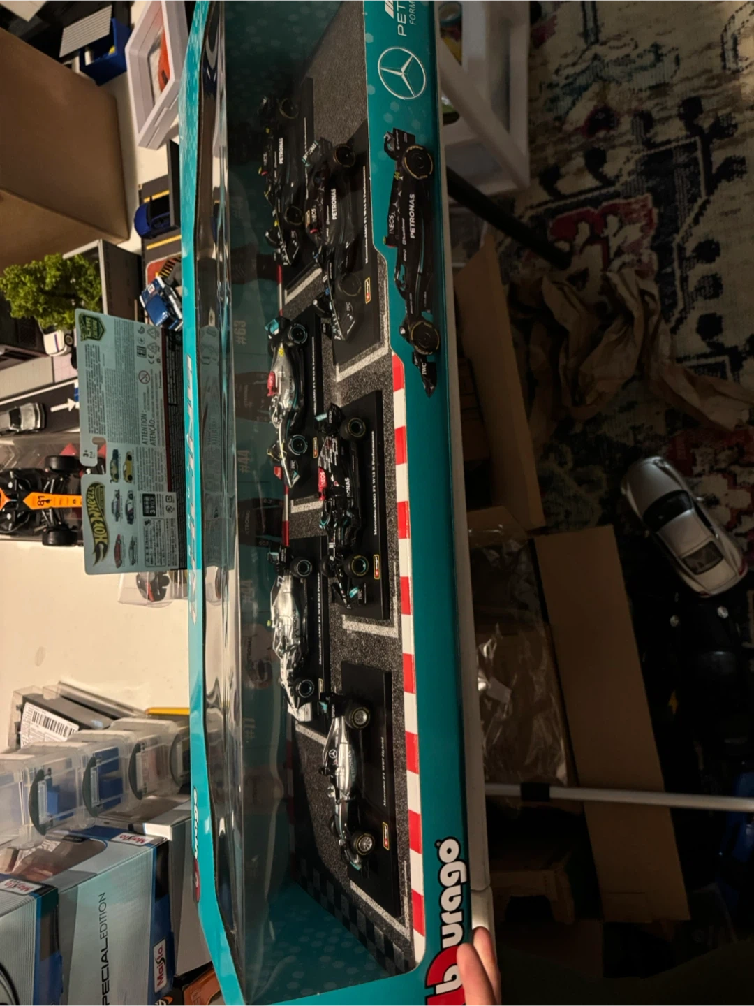 This Burago set includes multiple Formula 1 diecast model cars from various teams. The cars are 1:43 scale and are detailed replicas. This set is suitable for collectors and racing enthusiasts aged 3 and up.