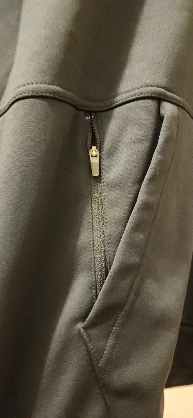 This is a Nike Therma-FIT hoodie in black. It's a men's size XL. Features a zippered pocket and a kangaroo pocket.