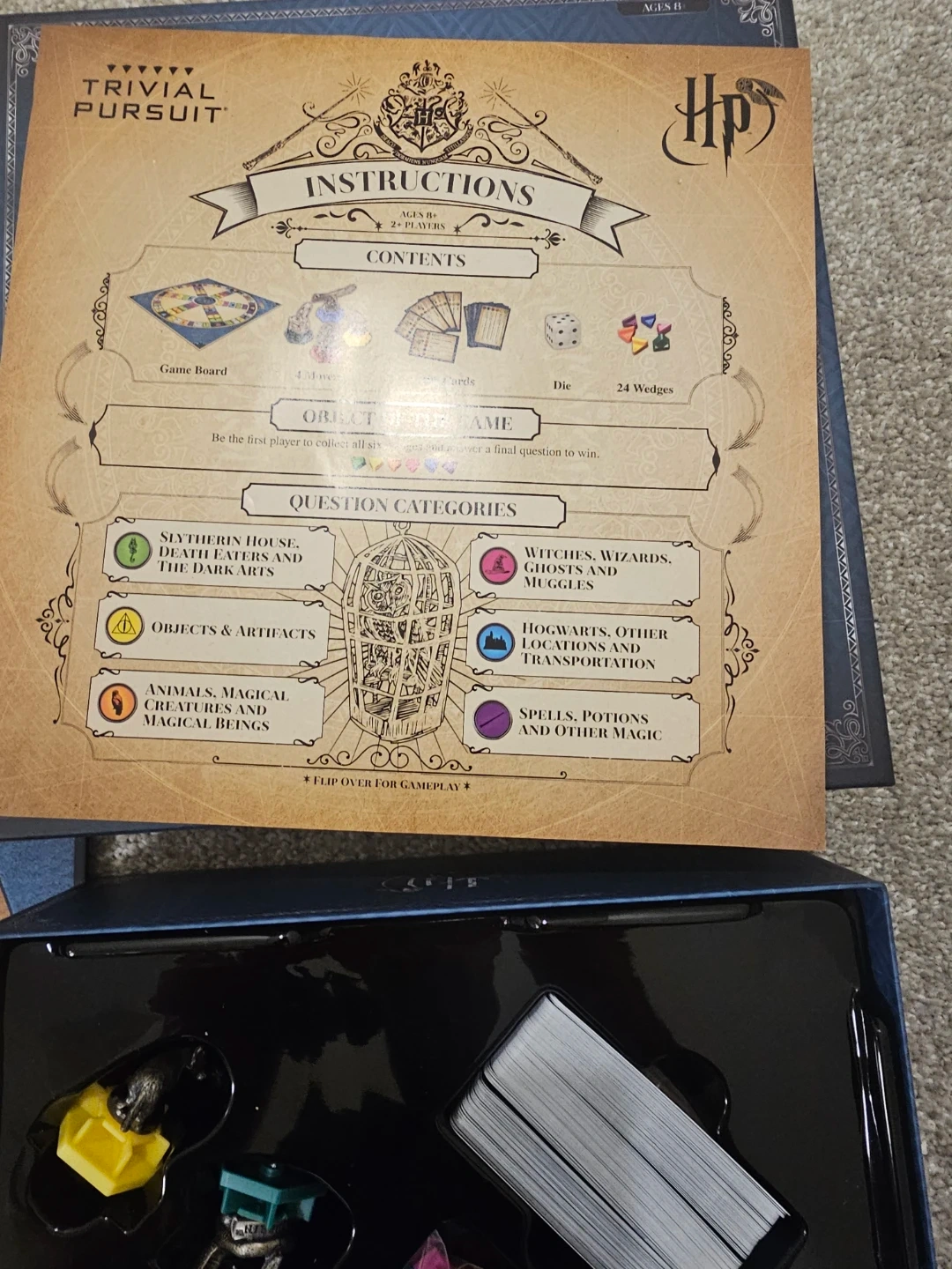 This is the Trivial Pursuit World of Harry Potter Ultimate Edition board game. It features 1800 questions for fans of the Wizarding World. Includes game board, wedges, cards, and die. Great for Harry Potter trivia nights!