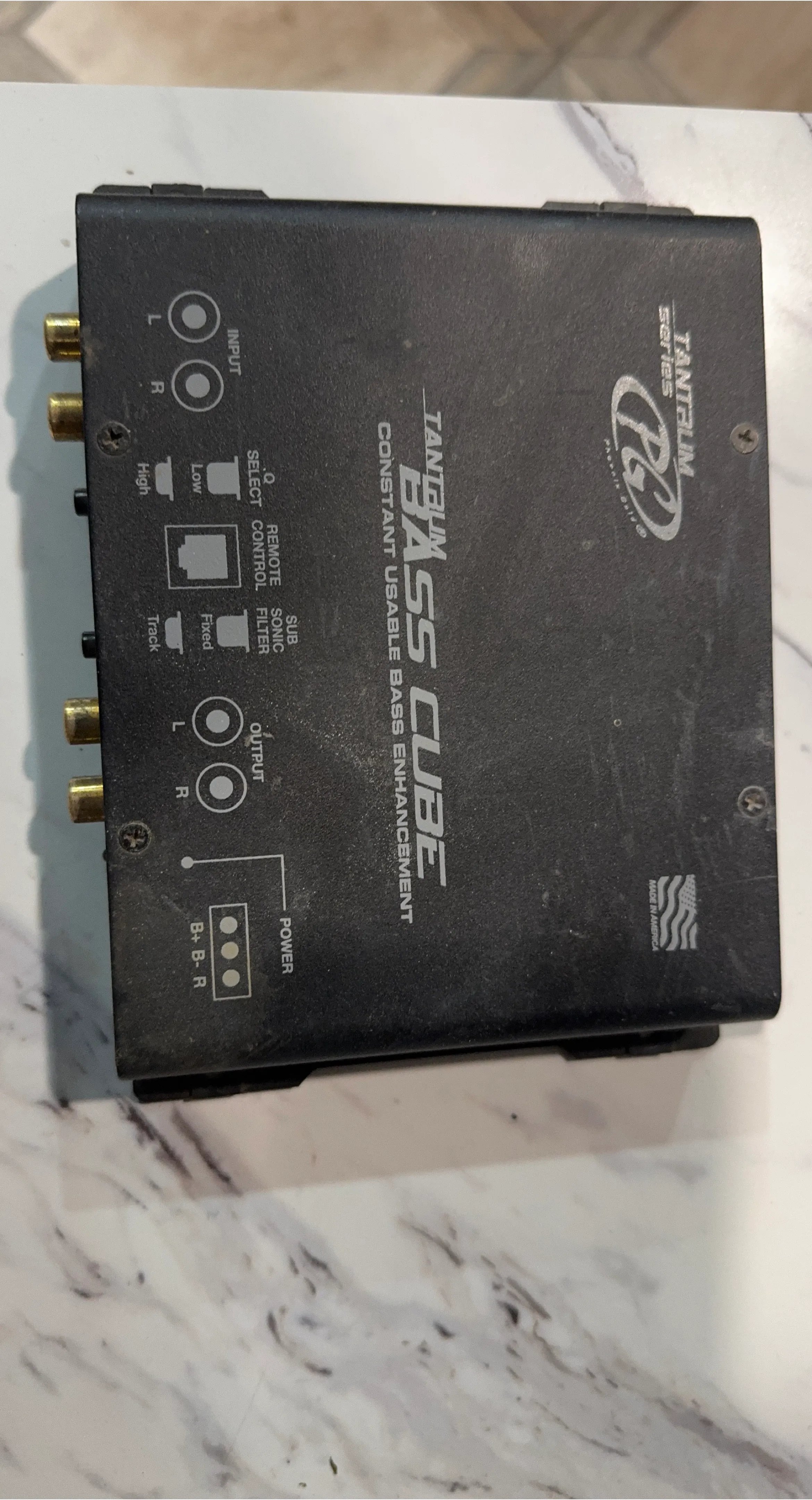 This is a Tantalum PG Bass Cube with constant usable bass enhancement. It features remote select control and sonic filter. Made in America. Remote not included.