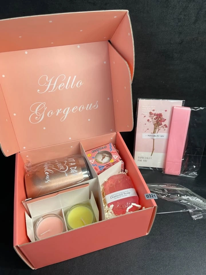 Great gift for women, Valentine's Day, or a birthday. This beauty/spa gift set includes a 12oz insulated tumbler mug, candles, bath bomb, and diamond soap bar.