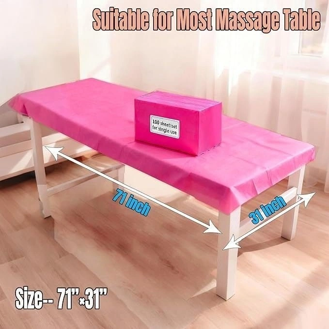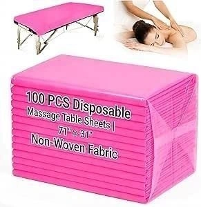 100 pcs disposable massage table sheets spa bed covers 71"x31" - non woven fabric waterproof protector for waxing, tattoo, beauty salon, esthetician table bed (pink). New and sealed. Original price was approx $40.