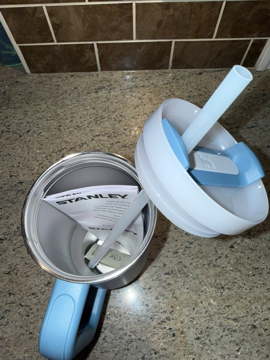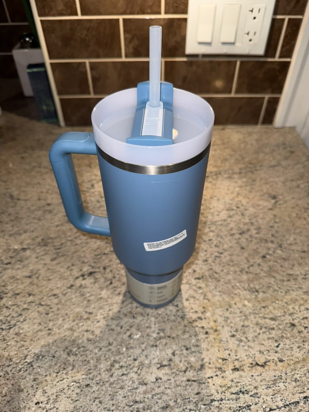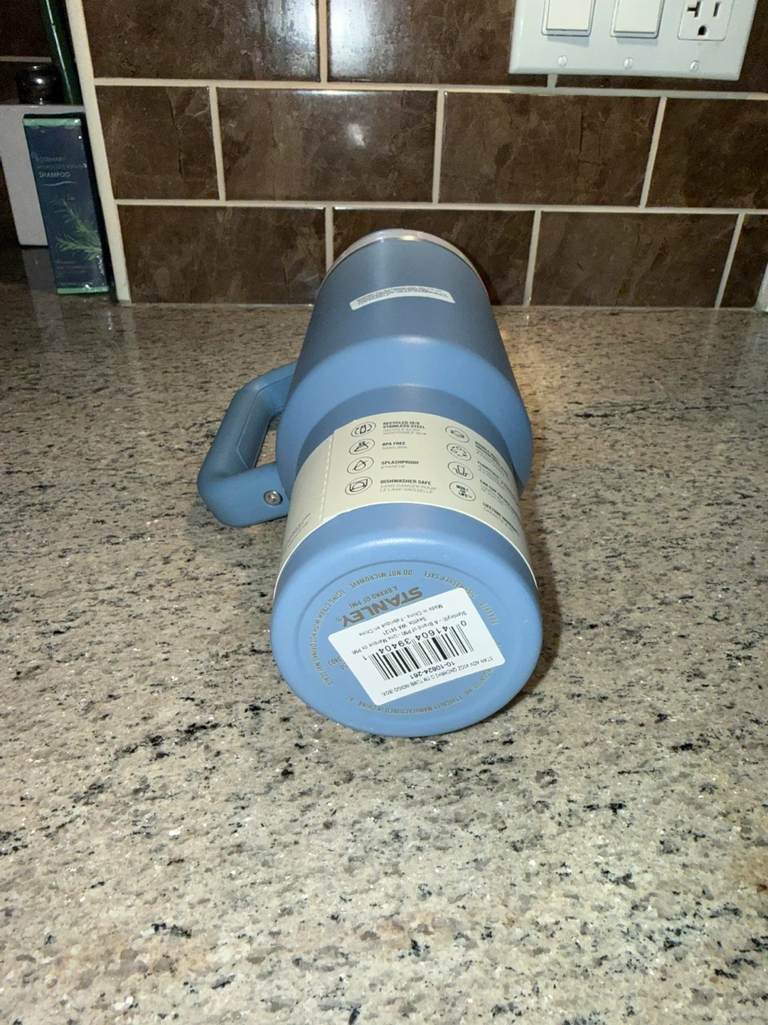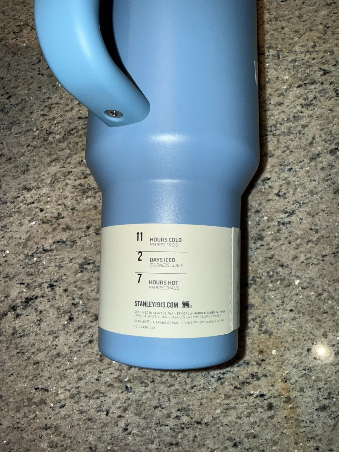 This brand new Stanley Flowstate Quencher H2.0 Tumbler holds 40 oz, or 1.18 L. It's made with recycled 18/8 stainless steel and features double-wall vacuum insulation. This tumbler keeps drinks cold for 11 hours, iced for 2 days, and hot for 7 hours. It's also BPA-free, splash-proof, dishwasher safe, and car cup holder compatible.