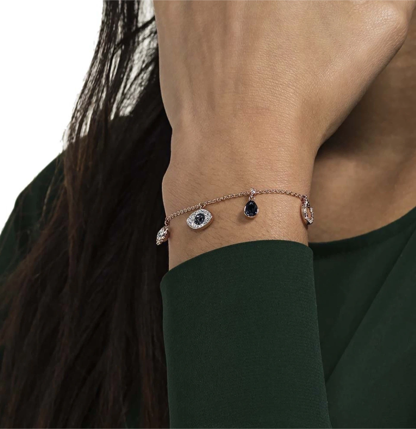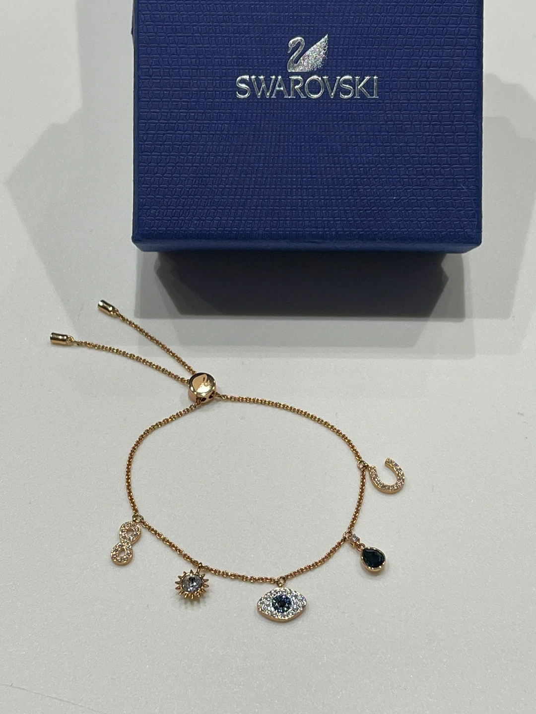 Authentic Swarovski Infinity, Evil Eye and Horseshoe Charm Bracelet - 18k rose gold plated