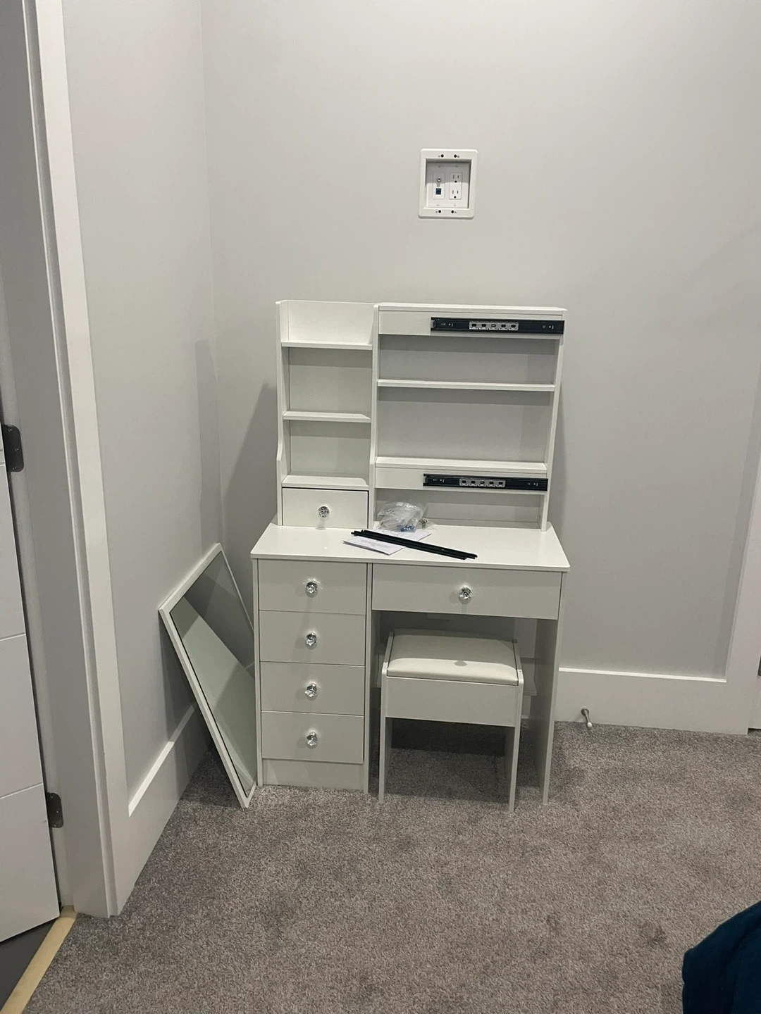 White Vanity Dressing Table with Stool and Mirror