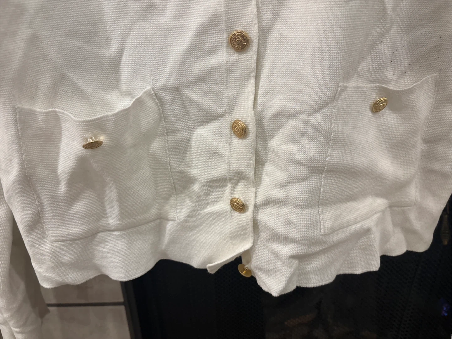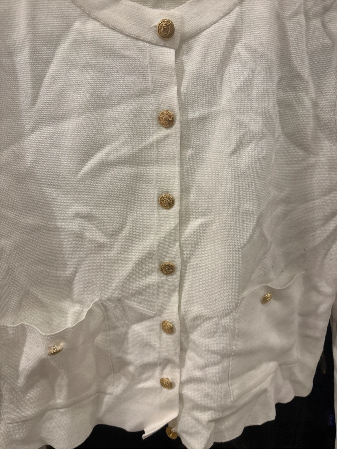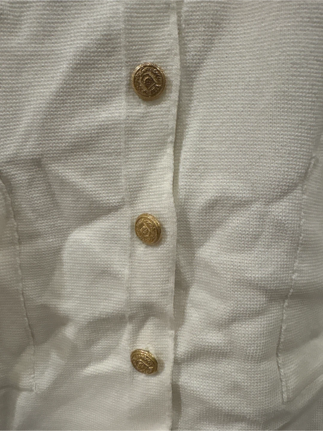 ZARA White Knit Button-Up Cardigan with Gold Buttons