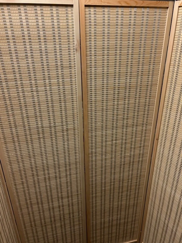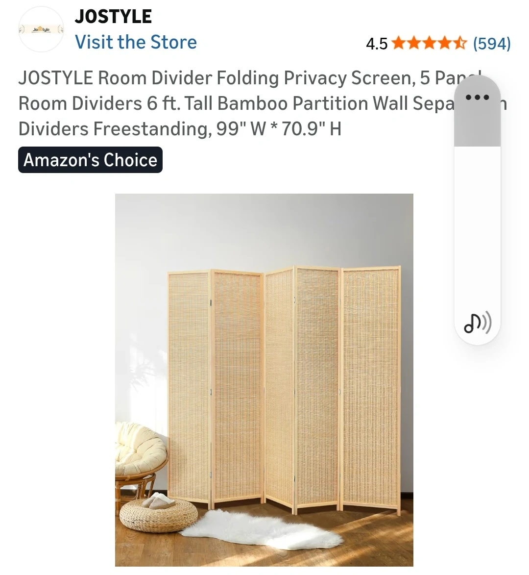 This JOSTYLE 5-panel folding privacy screen is made of natural bamboo. It's 6 ft tall and designed for freestanding use. Each panel measures 19.8" W x 70.9" H.