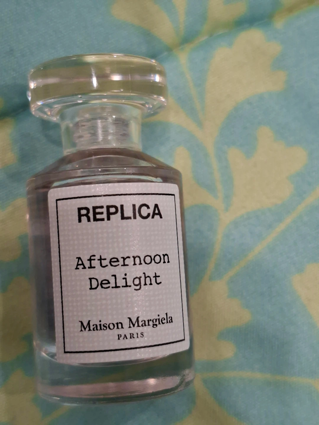 This is a 7 ml bottle of Maison Margiela Replica Afternoon Delight fragrance. It's a unique scent designed to evoke specific memories. A wonderful addition to any perfume collection!