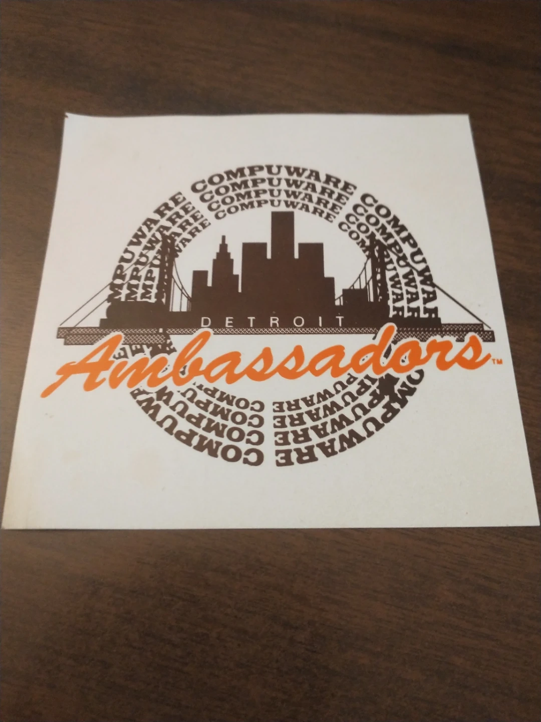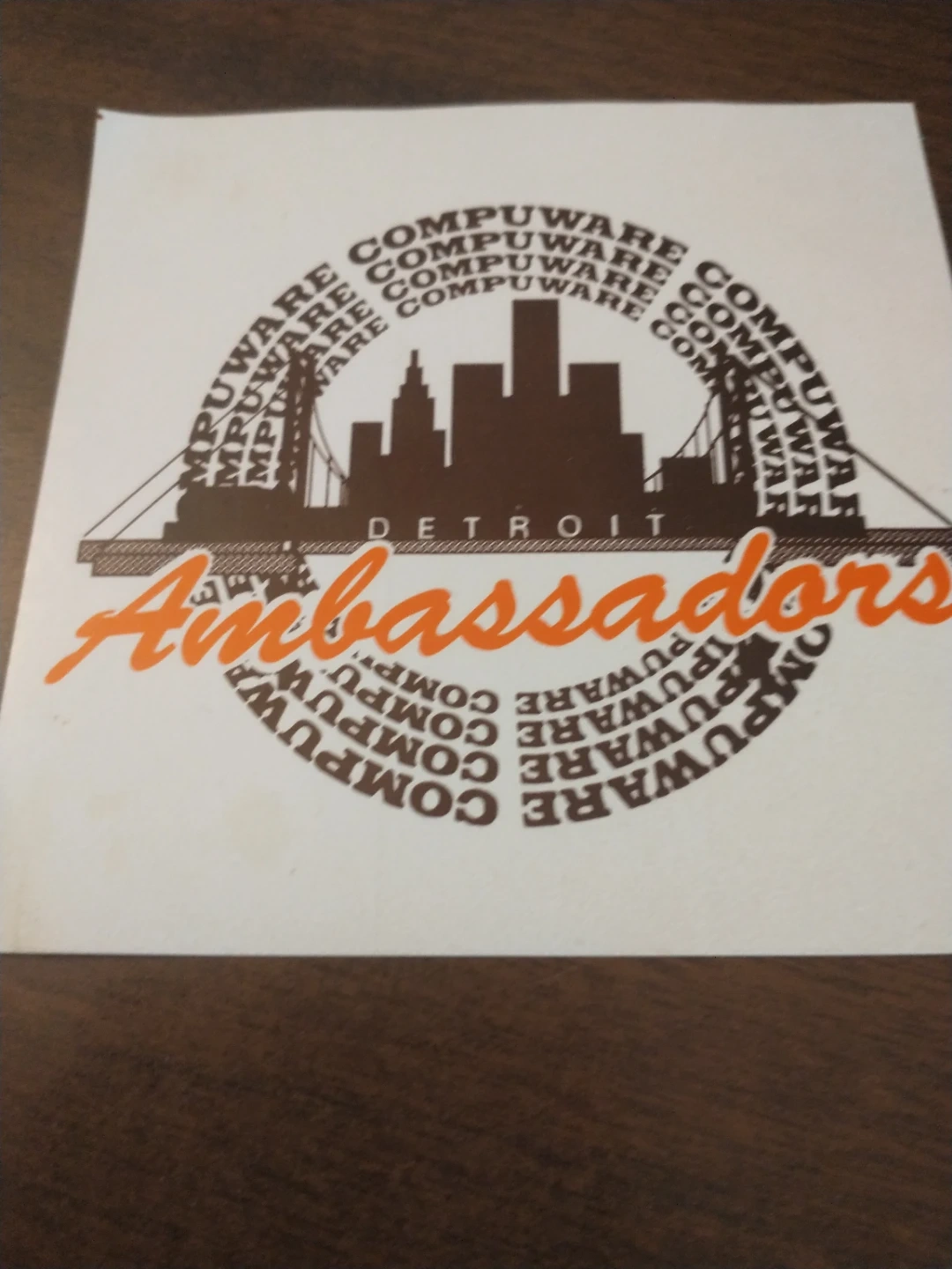 Buy & SellRare 1991 Detroit Compuware AmbassadorsvStickerRare 1991 Detroit Compuware AmbassadorsvSticker$7In box 17. 11/91 penned on back.ConditionNewWHERE TO MEETCheck LocationView MapSELLERStevenBroadview N28626 reviews0 chats·0 favorites·3 viewsSEND CHAT TO SELLERHi Steven! I’m interested in your listing.Hi Steven! I’m interested in your listing.Get the Karrot app to chatSign In to chat