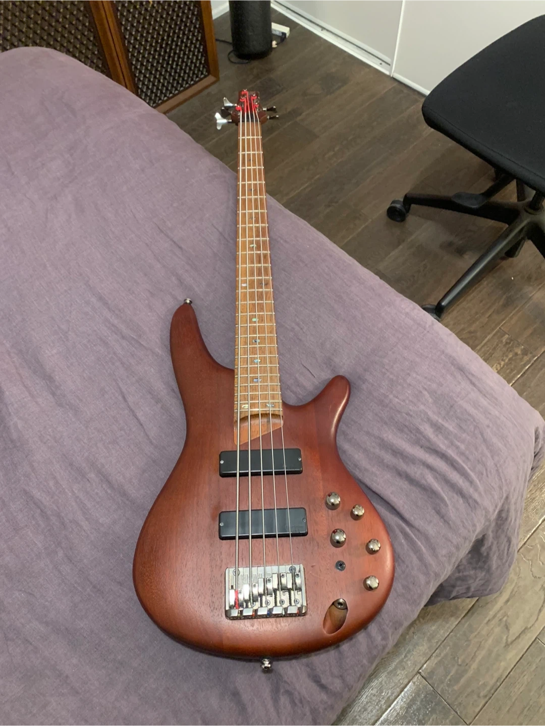 Selling my Ibanez SR505 because I bought another Ibanez bass and want to try something different for my secondary bass. This bass is beautiful and sounds and plays great. The photos don't quite do it justice. Bartolini MK1 pickups (imo they sound better than the BH2s that come on the newer 505E basses). Small dent (as pictured), but purely cosmetic and doesn't affect sound or playability. I can include a softcase. If you want to play it amped before buying you'll have to bring your own, because I don't have one. Pick up in Bloor/Dovercourt or we can meet up nearby.