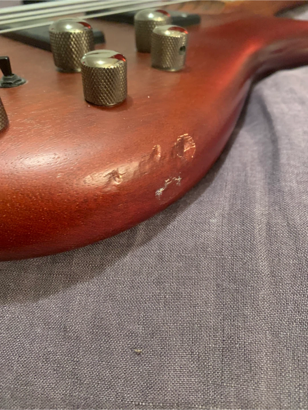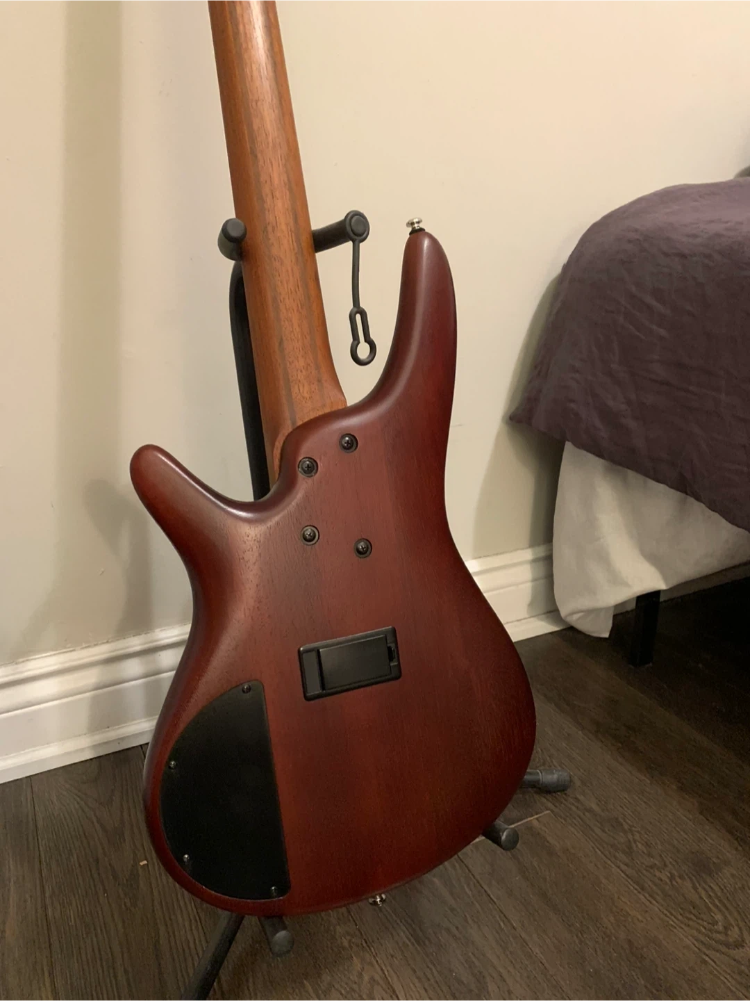 Selling my Ibanez SR505 because I bought another Ibanez bass and want to try something different for my secondary bass. This bass is beautiful and sounds and plays great. The photos don't quite do it justice. Bartolini MK1 pickups (imo they sound better than the BH2s that come on the newer 505E basses). Small dent (as pictured), but purely cosmetic and doesn't affect sound or playability. I can include a softcase. If you want to play it amped before buying you'll have to bring your own, because I don't have one. Pick up in Bloor/Dovercourt or we can meet up nearby.