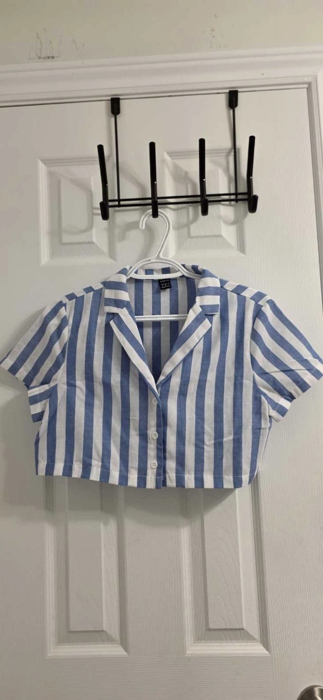 Buy & SellWomen's Cropped shirtWomen's Cropped shirt$3Women's crop shirt, size small. All for $5.WHERE TO MEETCheck LocationView MapSELLERjeniferBradley100 reviews0 chats·0 favorites·2 viewsSEND CHAT TO SELLERHi jenifer! I’m interested in your listing.Hi jenifer! I’m interested in your listing.Get the Karrot app to chatSign In to chat