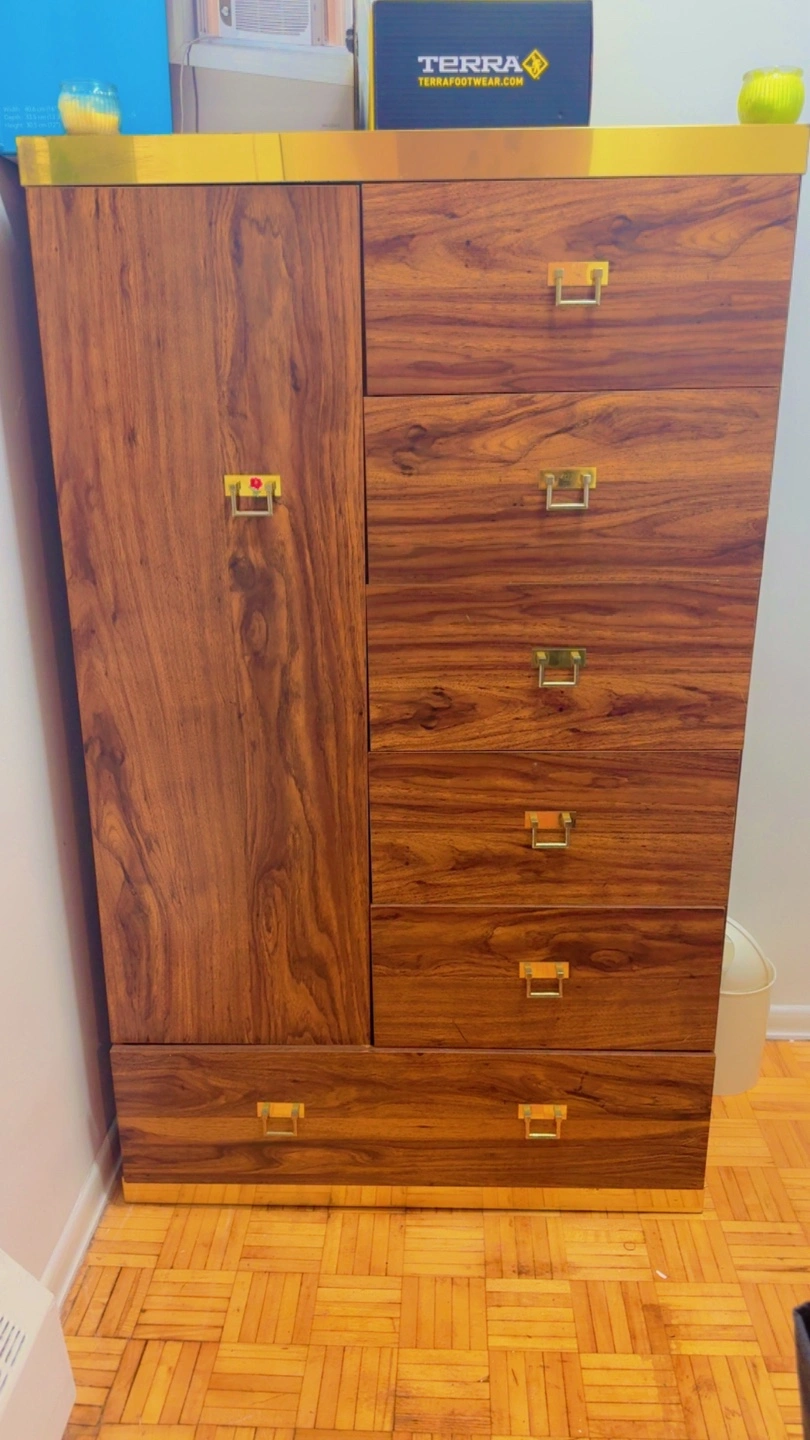 Vintage Wood Dresser with Gold Accents