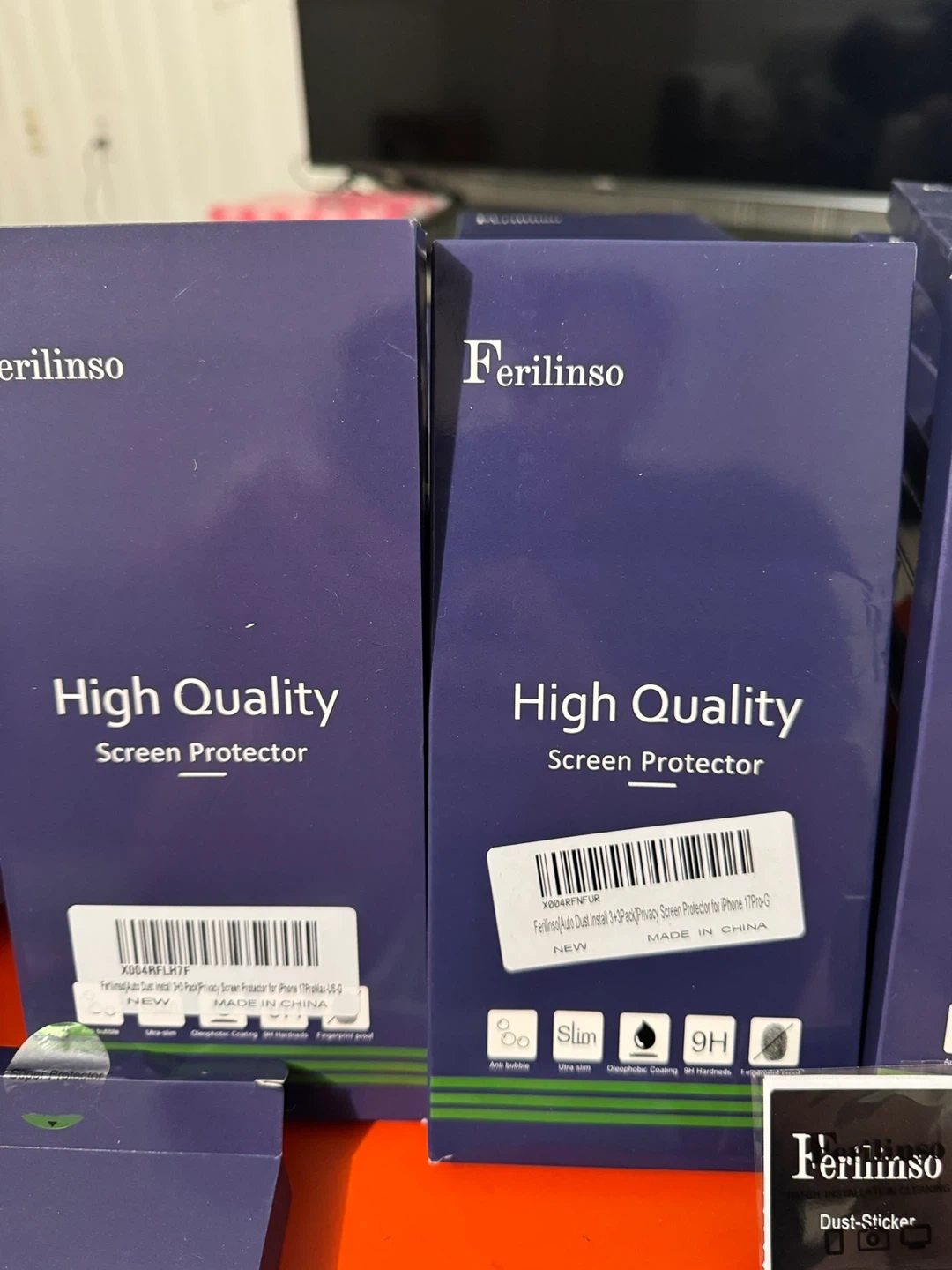 This listing includes multiple high-quality screen protectors from Ferinliso,. Each protector offers slim, 9H hardness, and an oleophobic coating for smudge resistance. An installation guide tool is included to help with application.