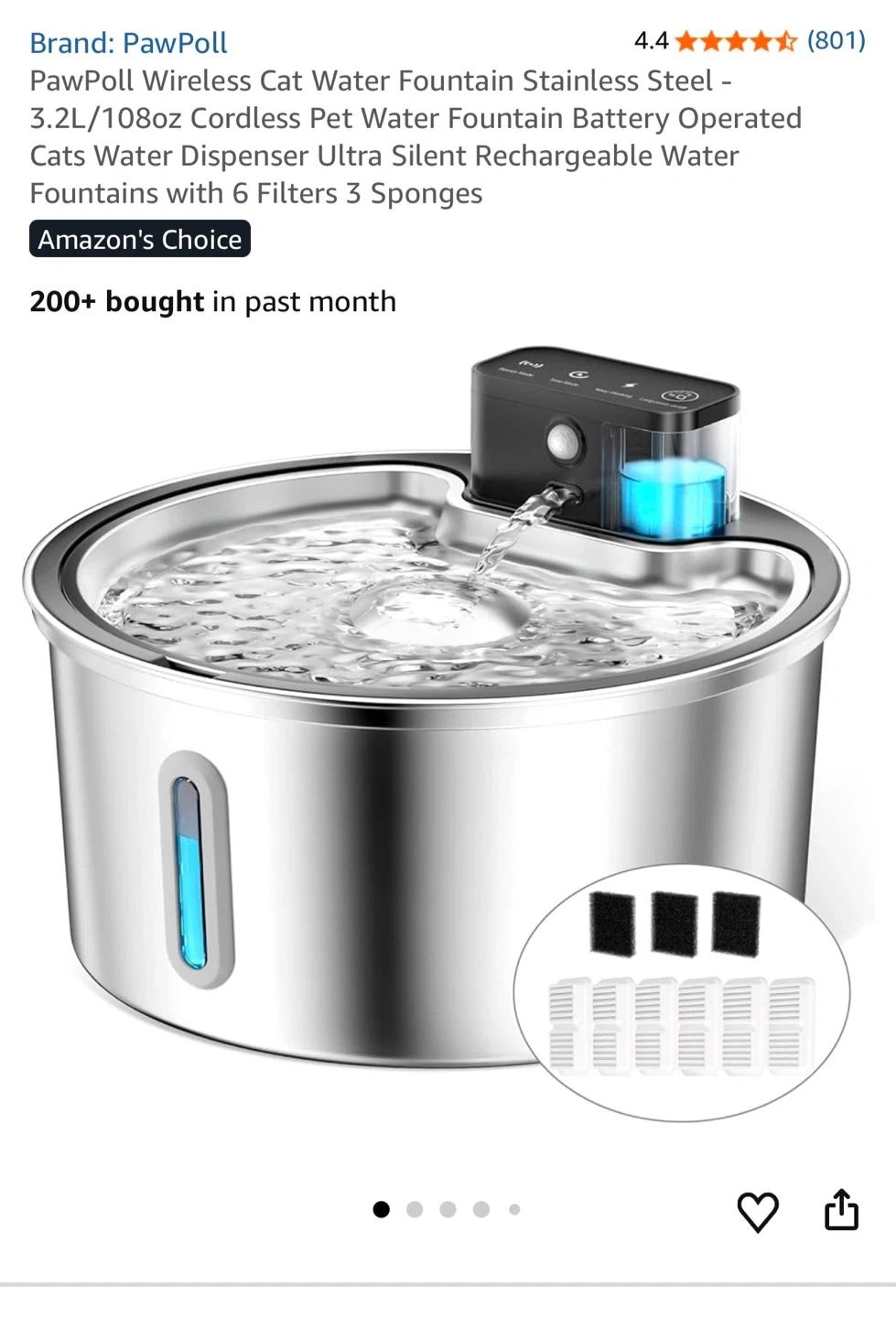Two brand new PawPoll automatic pet water fountains are available. Each fountain is 108oz and made of stainless steel. They're battery operated and cordless, designed to be ultra-silent for pets. Includes 6 filters and 3 sponges per fountain.