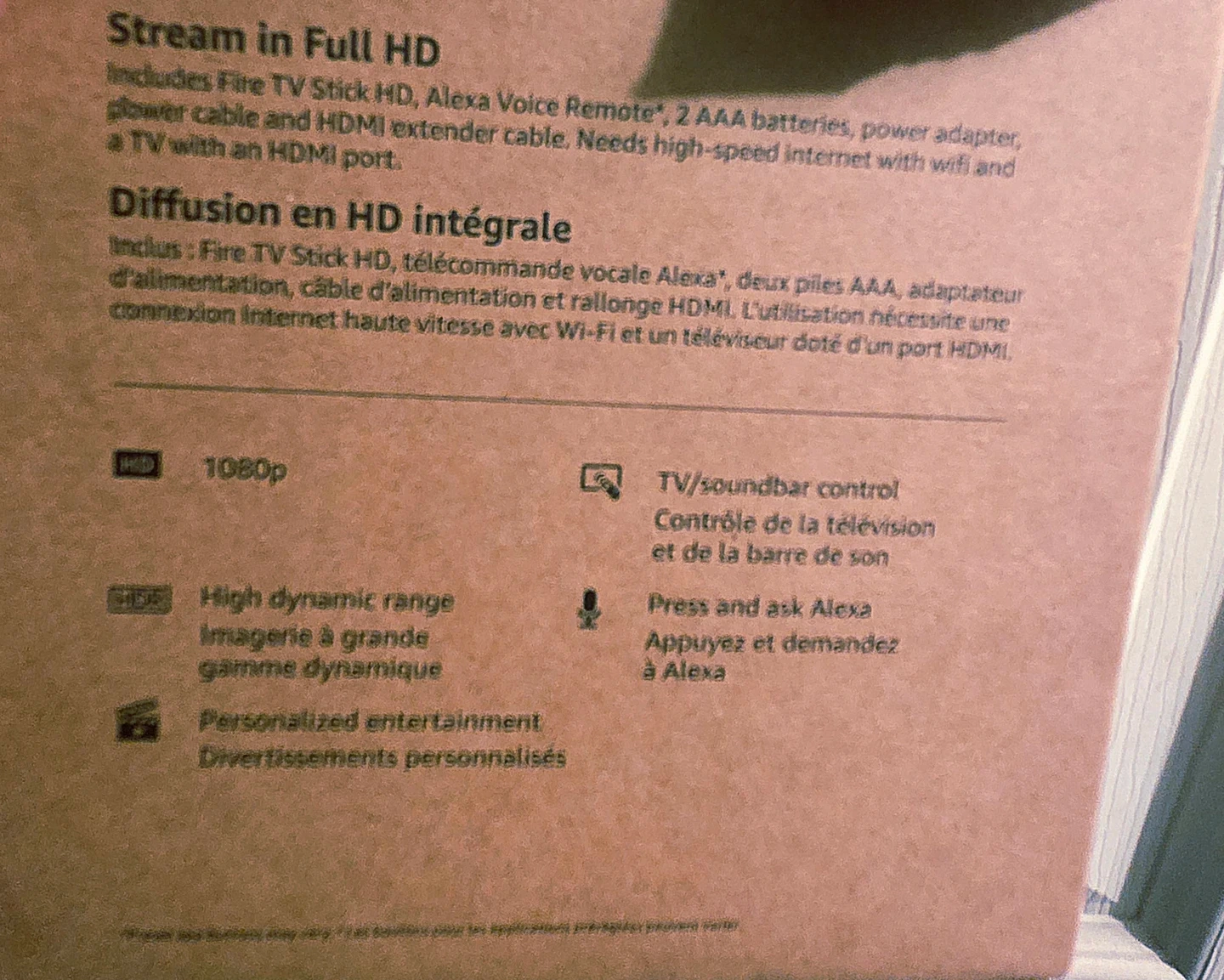 Stream in Full HD with the Amazon Fire TV Stick HD. It includes the Fire TV Stick HD, Alexa Voice Remote, 2 AAA batteries, power adapter, and HDMI extender cable. Supports Wi-Fi 5.