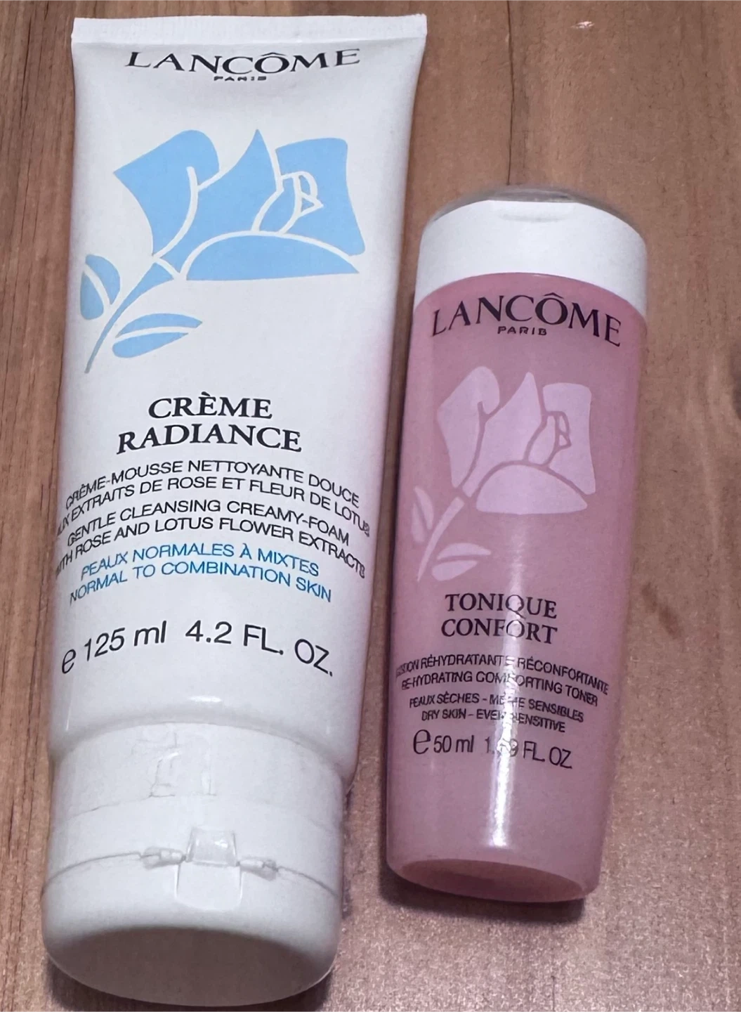This is a collection of Lancôme skincare and makeup items. It includes Lancôme Génifique Ultimate, Rénergie H.P.N. 300-Peptide Cream, Crème Radiance Gentle Cleansing Creamy-Foam (125 ml / 4.2 FL. OZ.), Tonique Confort Re-hydrating Comforting Toner (50 ml / 1.69 FL. OZ.), Lancôme Cils Booster XL, a "La Vie Est Belle" fragrance sample, and Idôle Lash Mascara. Great for beauty enthusiasts wanting to try multiple Lancôme products! I have recently acquired these. I have tried the creams and do not prefer the scent. I have tried the cleanser but prefer another I may have tried the toner. The rest are untried.