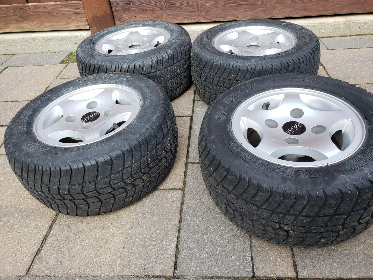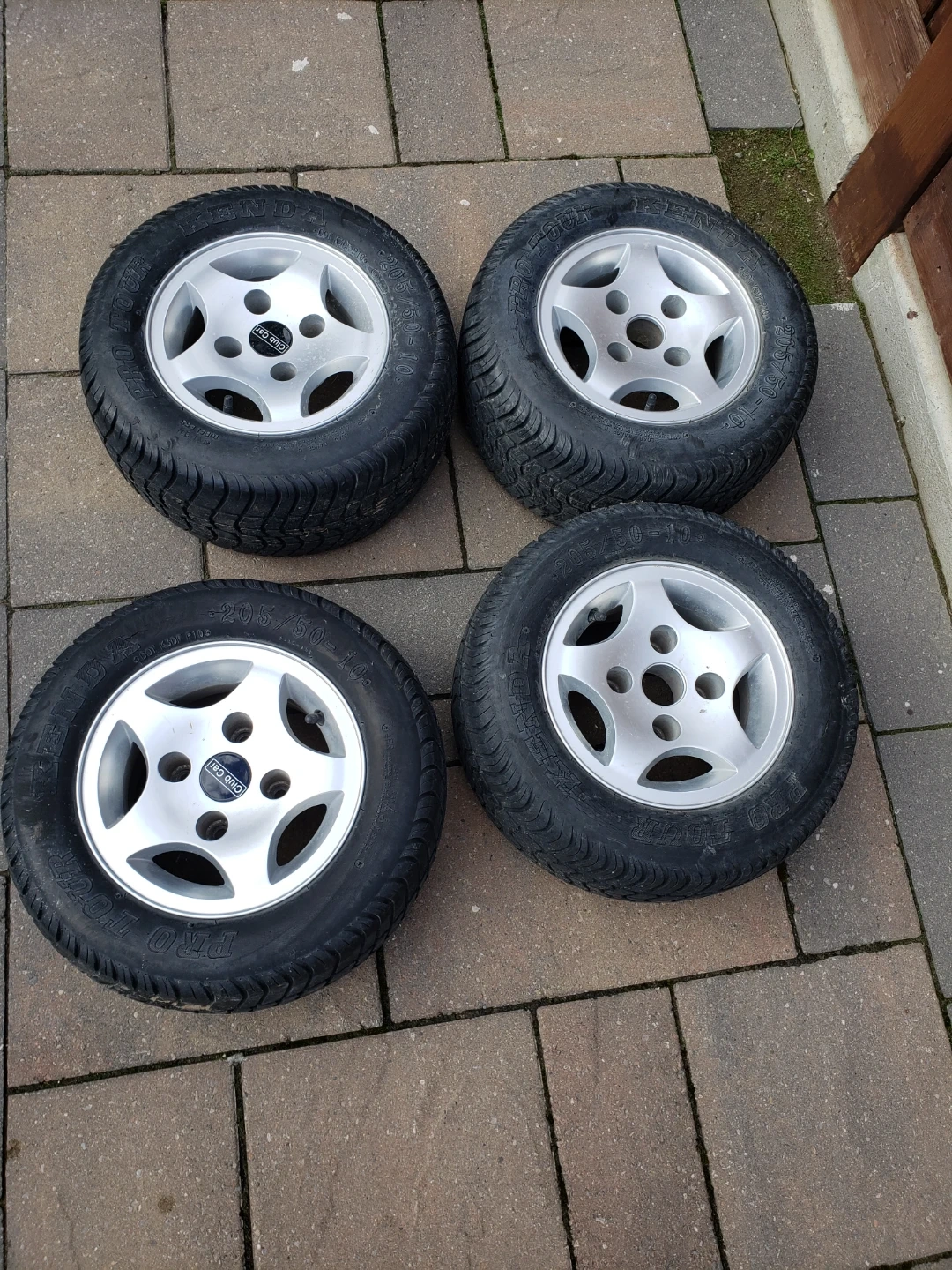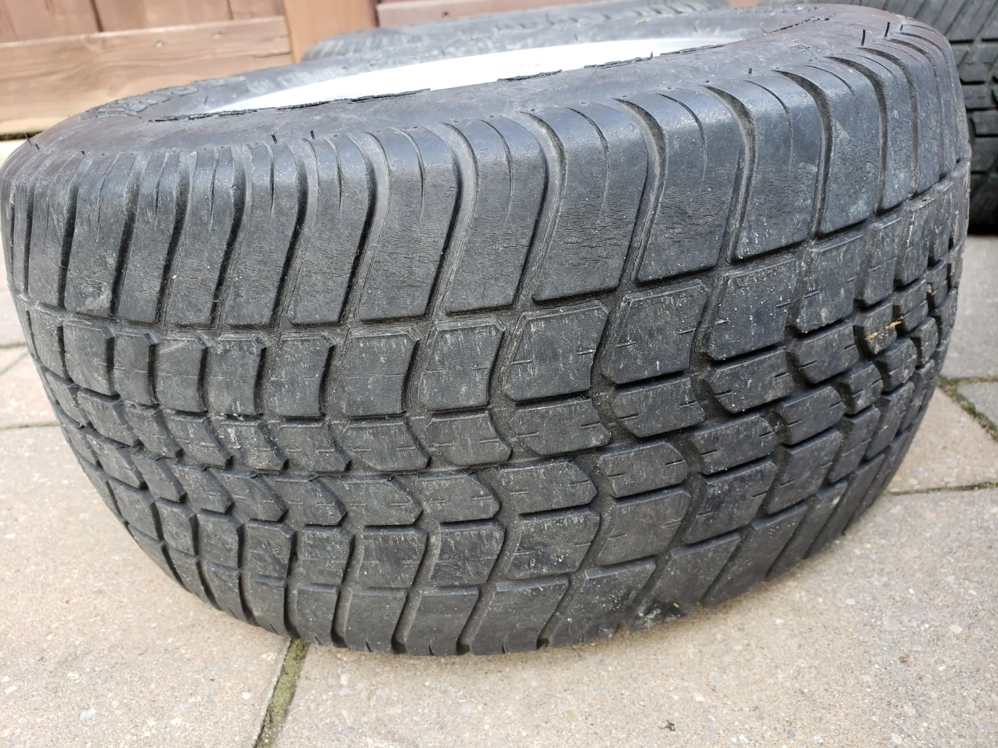 Set of four Pro-Golf tires with silver rims. Tire size is 205/50-10. These are turf tires, great for golf carts or similar utility vehicles. They're ready for use!