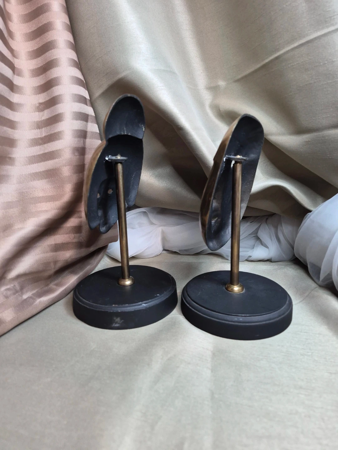 Pair of Vintage Solid Brass 9 1/2" Tall Asian Mask