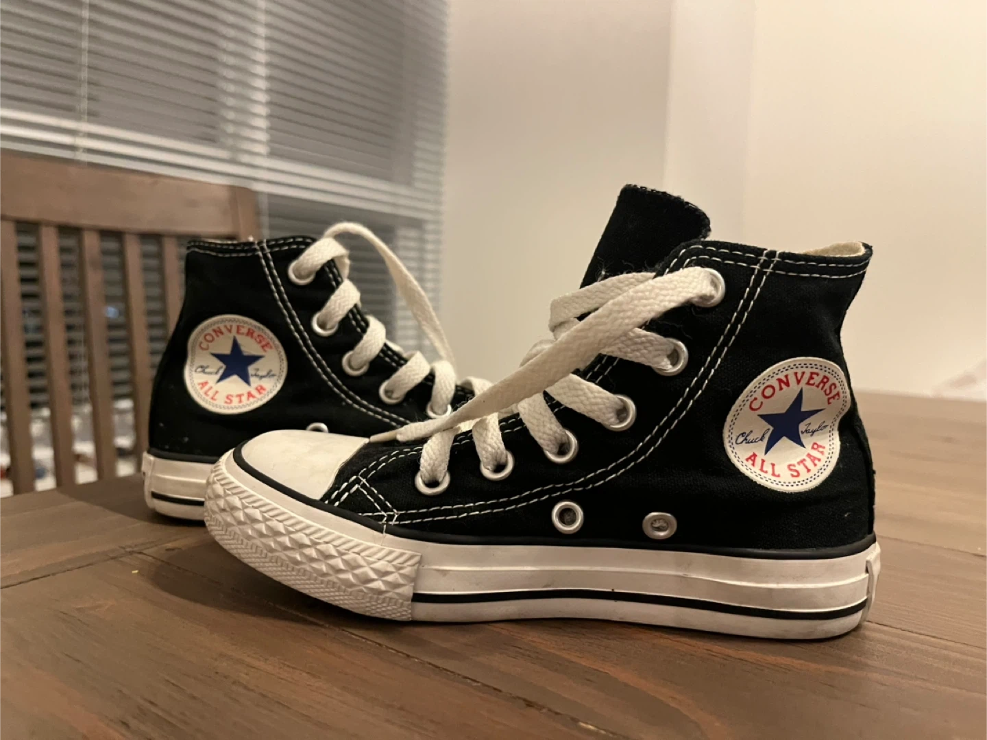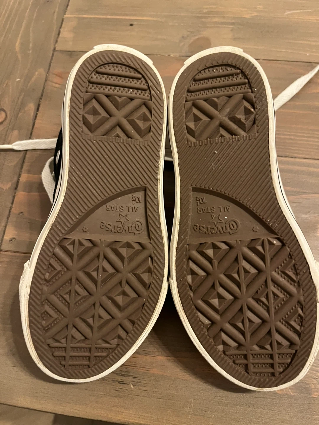 Buy & SellConverse Chuck Taylor All Star High Top Youth ShoesConverse Chuck Taylor All Star High Top Youth Shoes$20Black Converse Chuck Taylor All Star high top shoes for kids ( 5-7ish). US size 10.5. Only worn for a cpl photo shootsConditionLike newSize10.5BrandConverseWHERE TO MEETFremont villageView MapSELLERverifiedRhondaFremont Village600 reviews0 chats·1 favorites·7 viewsSEND CHAT TO SELLERHi Rhonda! I’m interested in your listing.Hi Rhonda! I’m interested in your listing.Get the Karrot app to chatSign In to chat
