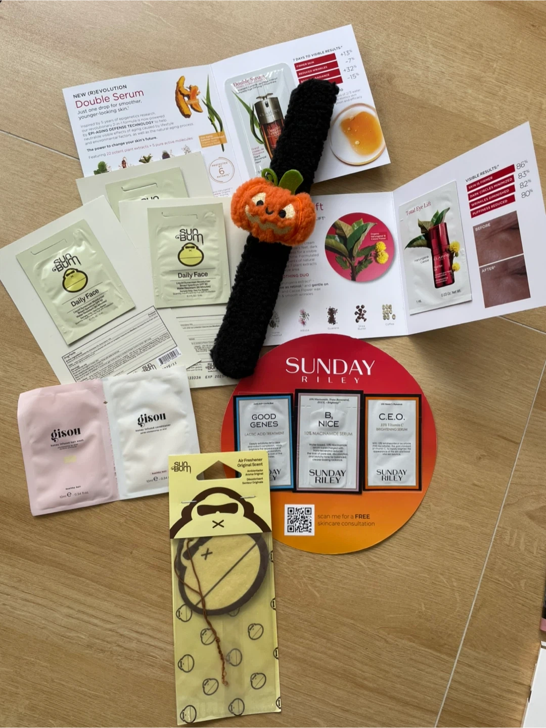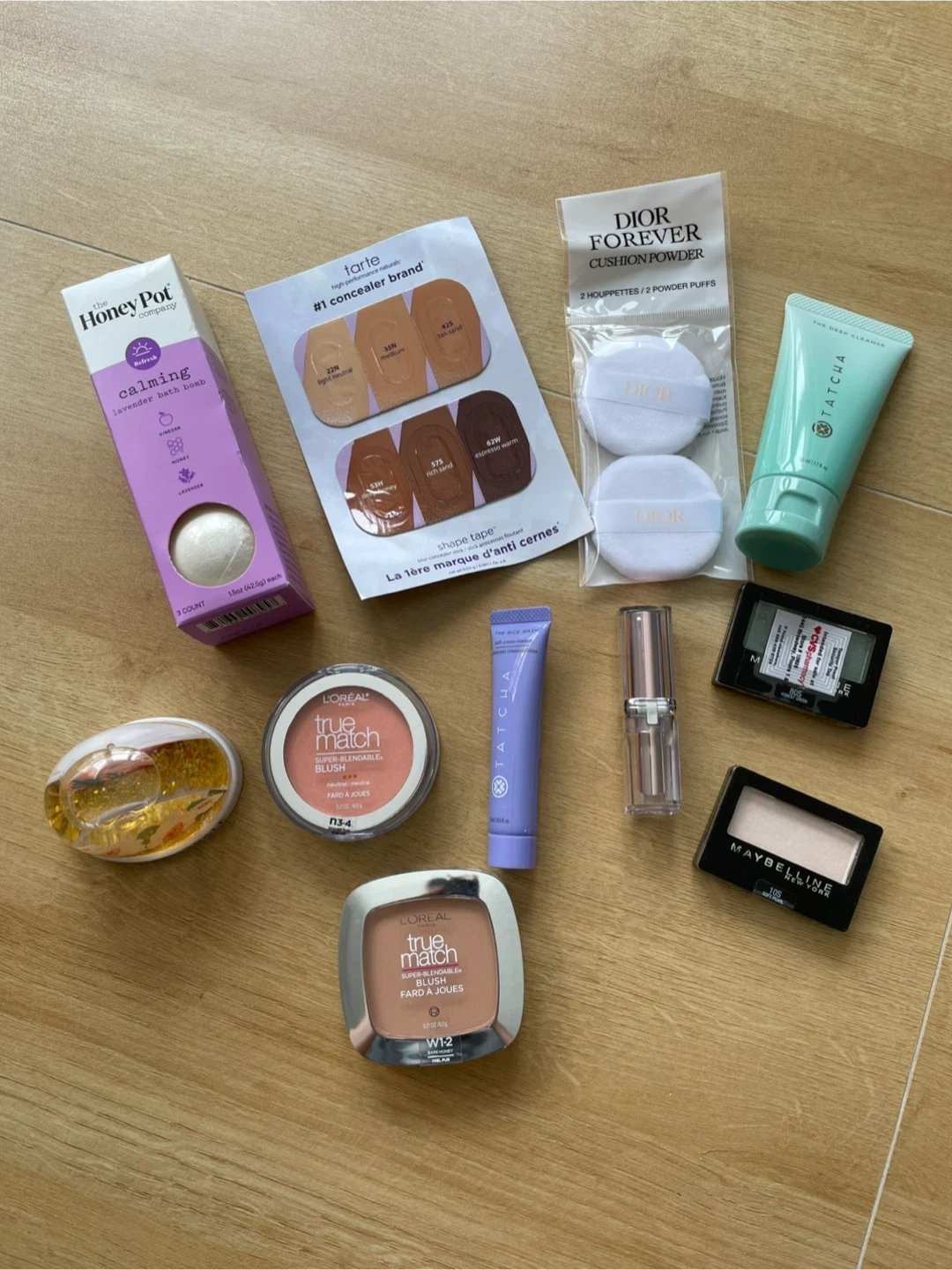 This lot includes a variety of beauty and skincare items. You'll find items from brands like Tarte, Dior, Maybelline, L'Oreal, and Sunday Riley. Also includes a Kylie Cosmetics flyer, an Adidas Moves body spray, and a HoneyPot Calming Lavender product. All items are sealed and new.