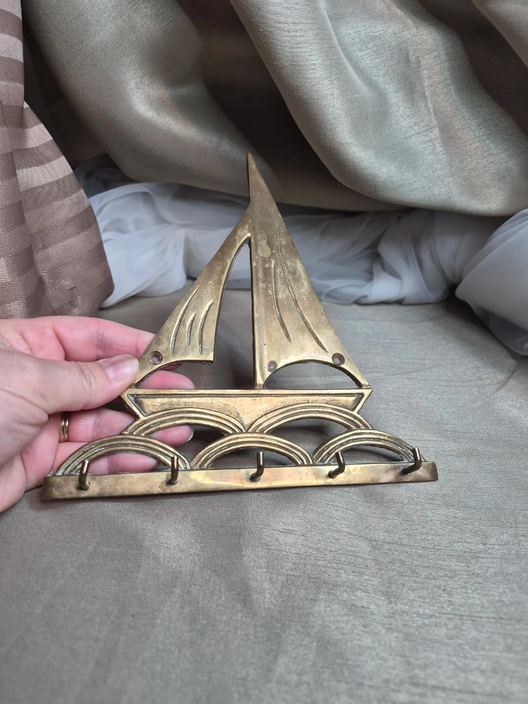 7" x 7 1/2" Ole Brass Sailboat Wall Hanging Key Holder
