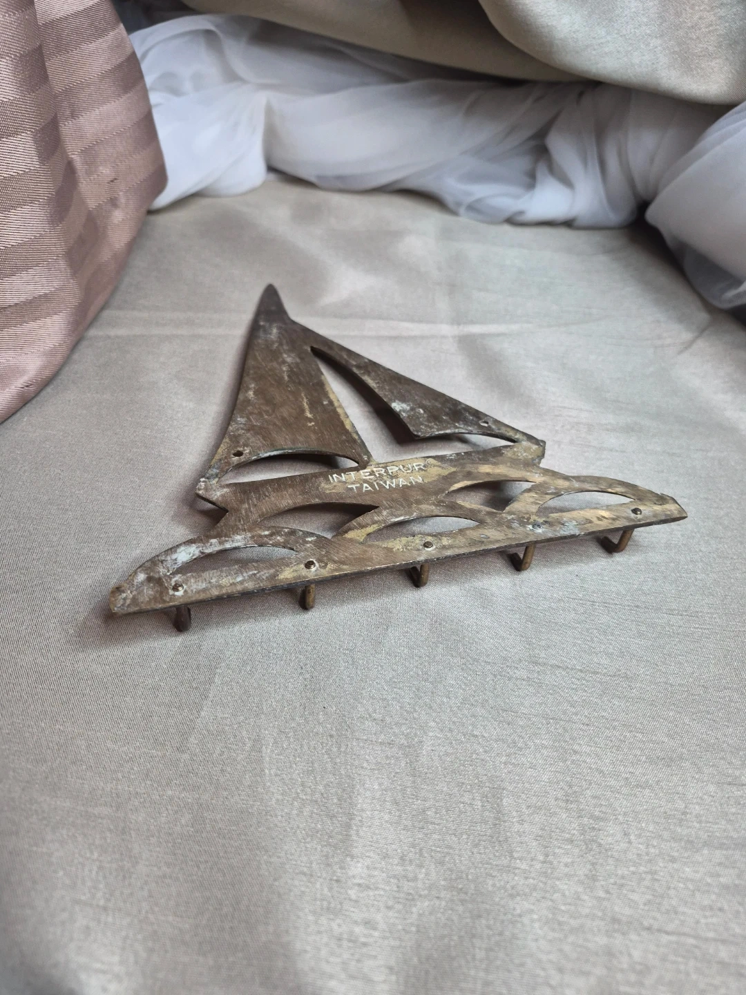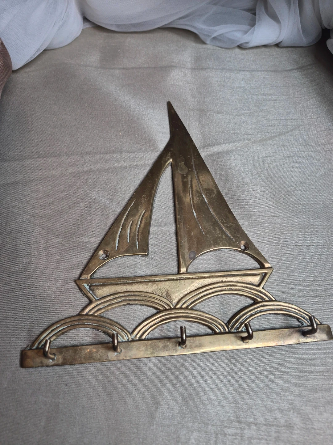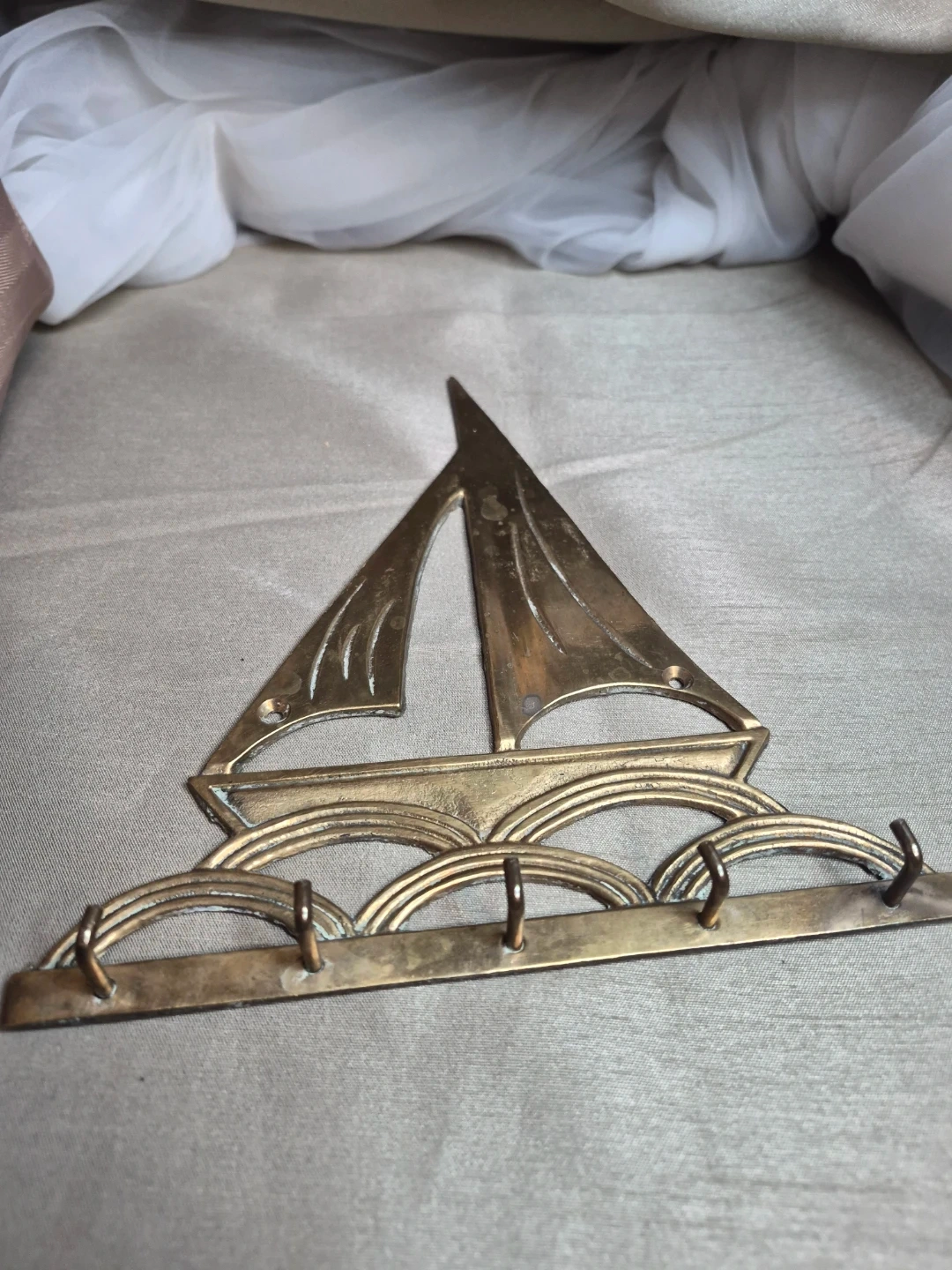 7" x 7 1/2" Ole Brass Sailboat Wall Hanging Key Holder no Hardware - please see all pictures