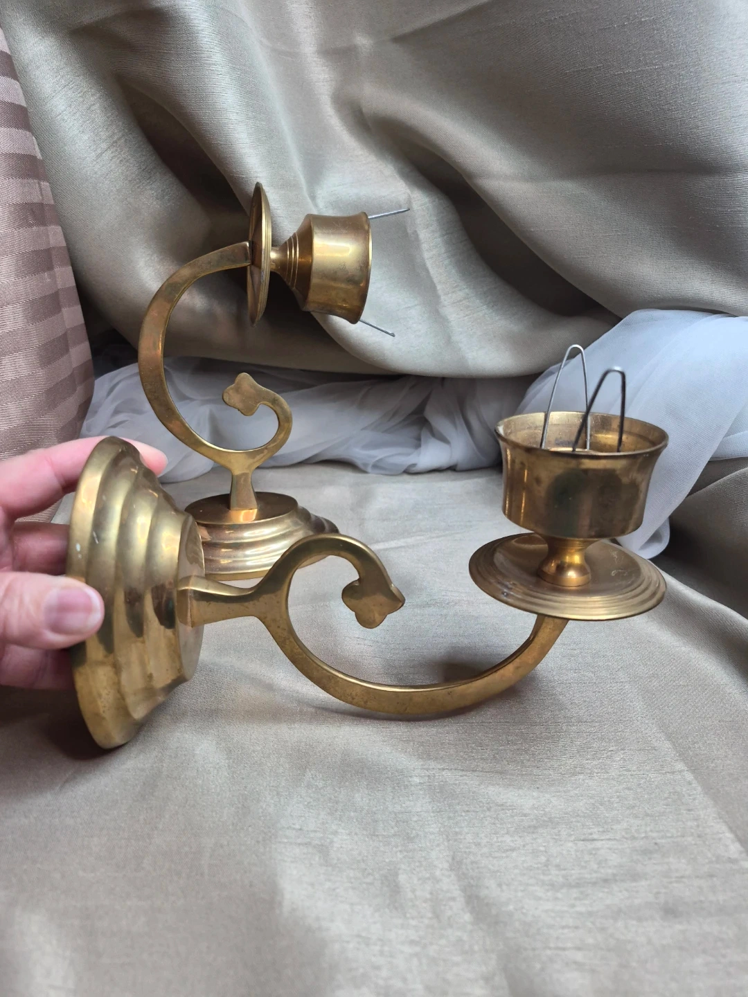 Pair of Matching Vintage Brass Wall Sconce - India - please see all pictures
