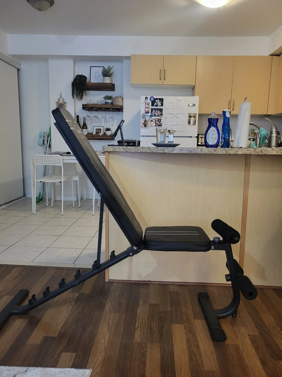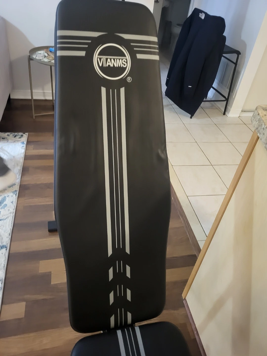 This Vianms adjustable weight bench is great for your home gym. It's designed for various exercises and has a comfortable padded surface. The bench can be adjusted to different positions for a full workout.