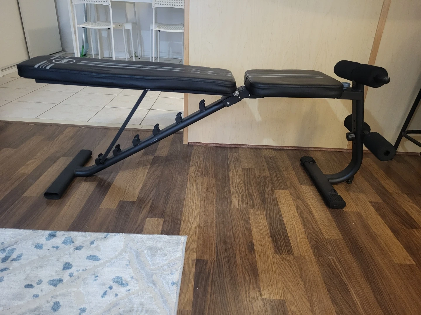 This Vianms adjustable weight bench is great for your home gym. It's designed for various exercises and has a comfortable padded surface. The bench can be adjusted to different positions for a full workout.