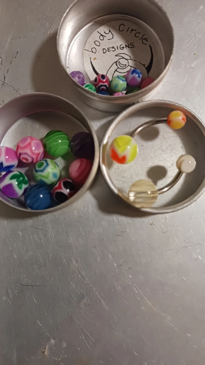 2 bellybutton piercings with 9 assorted colourful interchangeable beads. Great for matching your outfiteach day, or your mood!