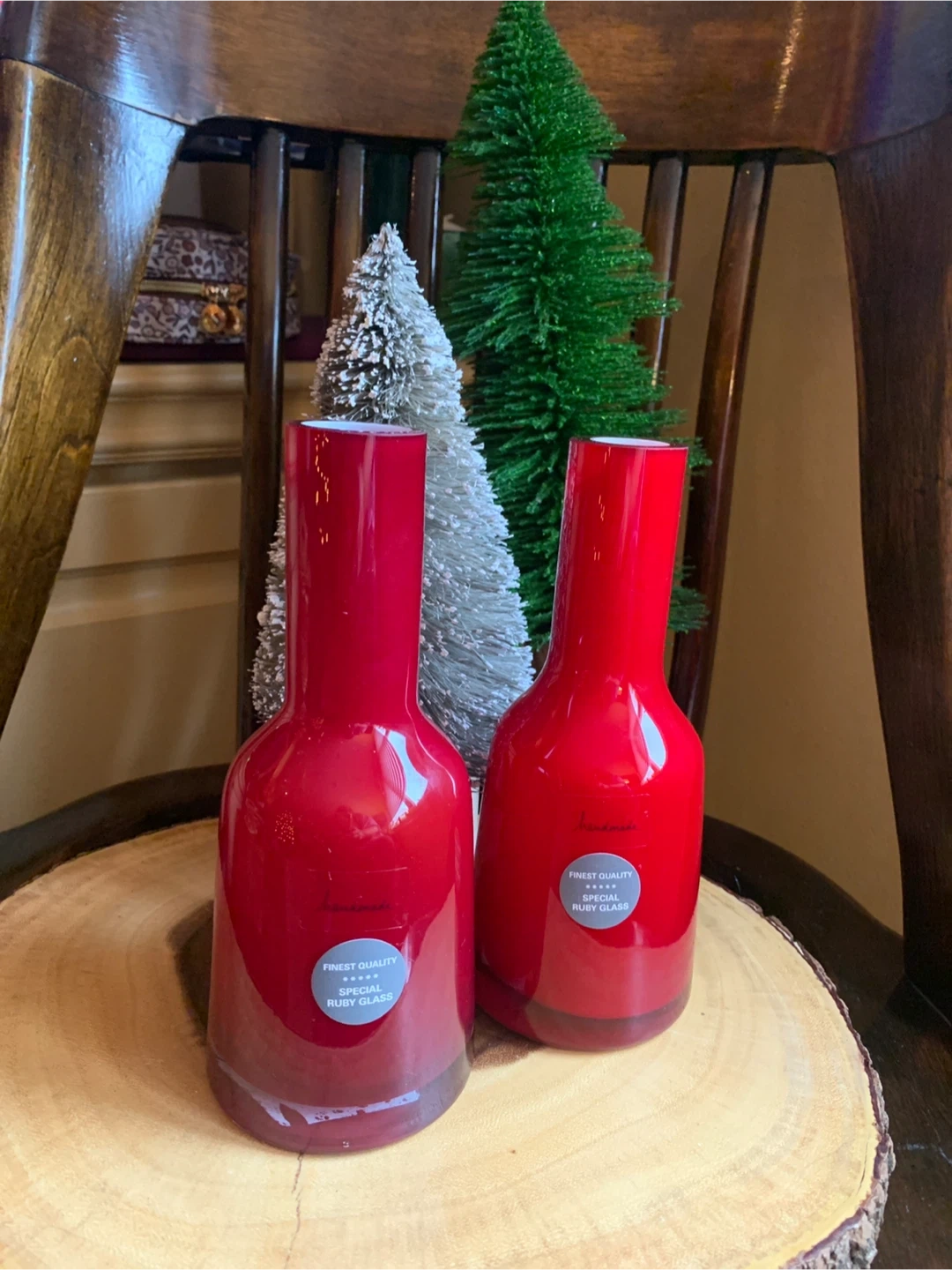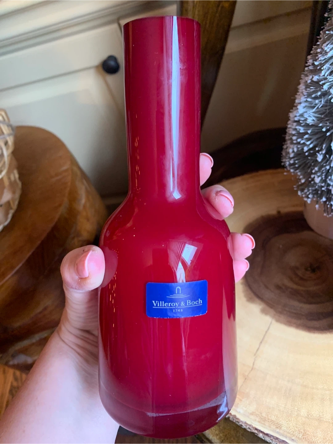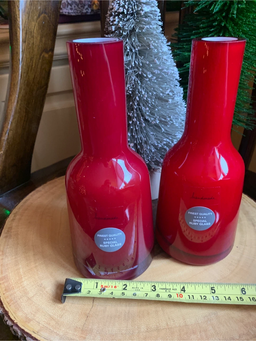 These are a pair of gorgeous Villeroy & Boch handmade vases made of special ruby red glass. They are vibrant shades of red colours and are made in Poland. They would look lovely with flowers or as decorative pieces. Measures approximately 8 inches tall. No chips or cracks. Will sell separately if you wish. Would look beautiful for a February tablescape! ♥️