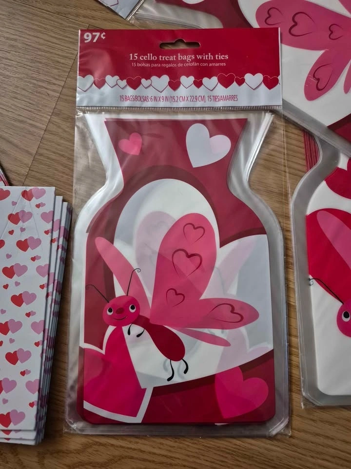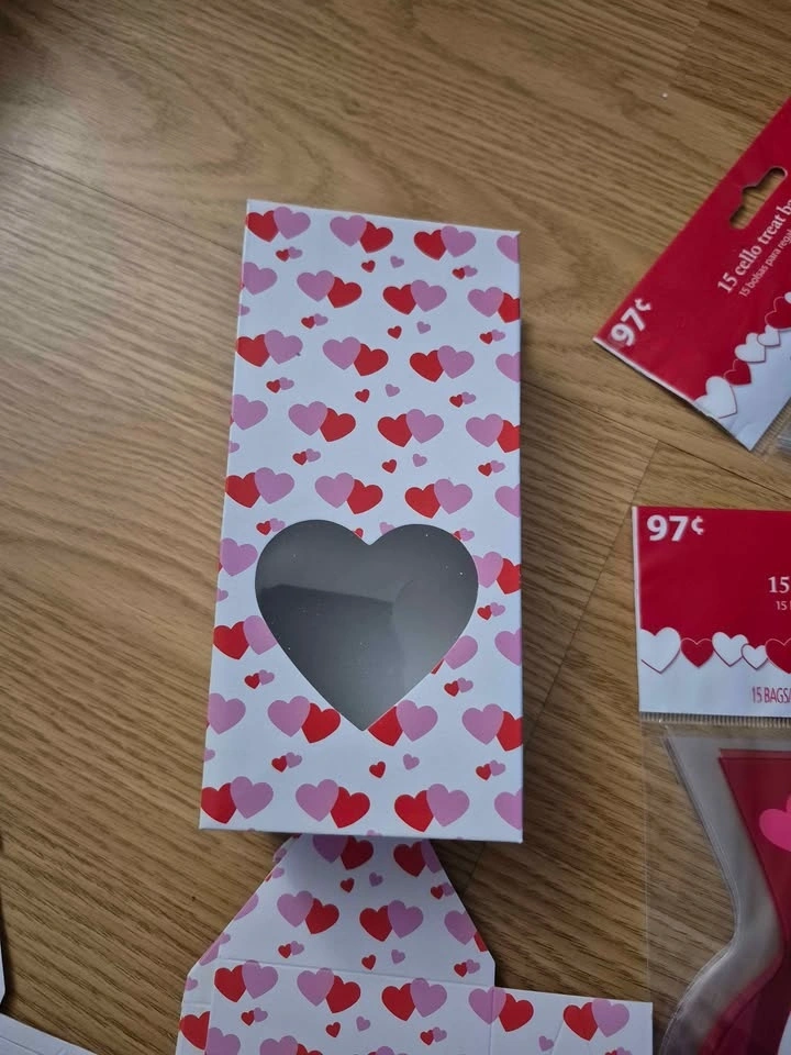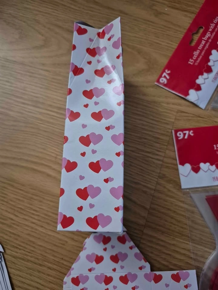 4 packs of Valentine's loot bags for candy or goodies. There are about 15 bags in each pack - maybe 1 or 2 missing. So, about 50-55 bags in all, with ties. 2 designs of little treat boxes. 16 boxes in total. All for $5. Pick up near North Talbot Park off Walker road.