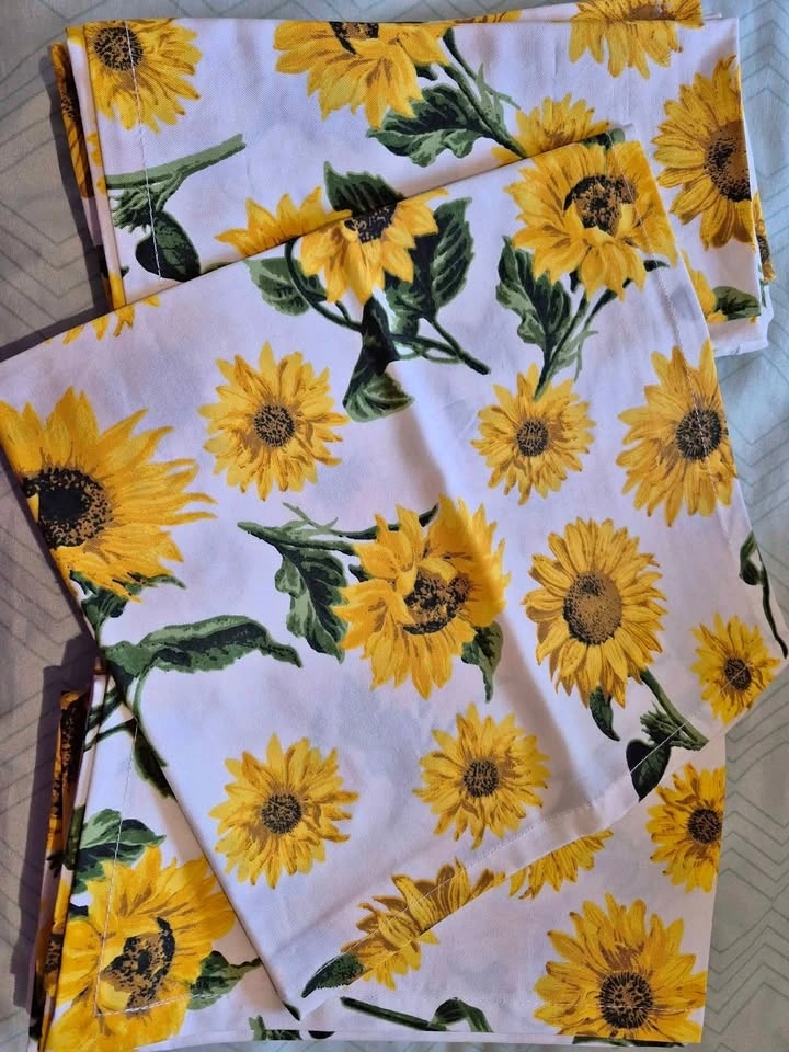 Set of 12 dinner napkins. 100% cotton. I have used 3 of the set - washed and ironed. The other 9 are still folded as they were packed. The design didn't go with my other accessories hence selling these.