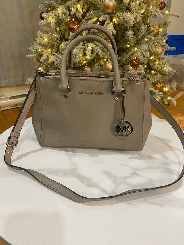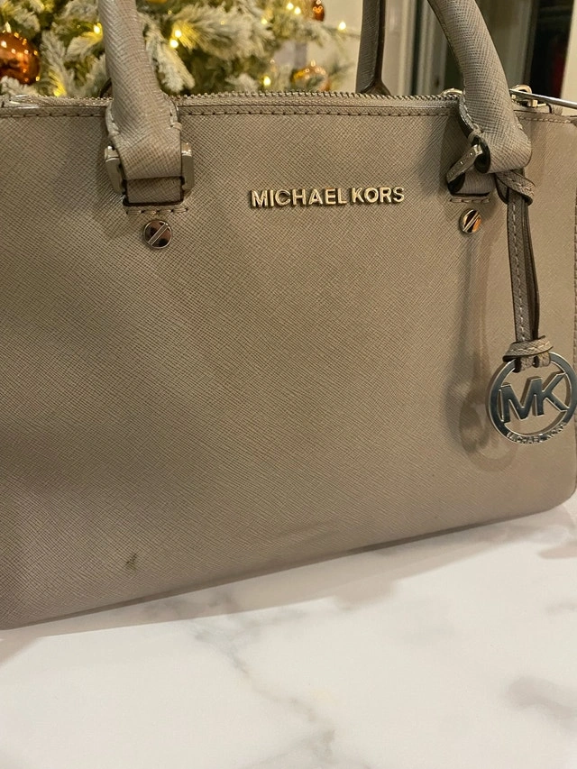Used MK bag but still in great shape. Only real wear & tear is on the rubber of the handles, which I’ve included a photo of. Zippered pockets are very clean. Genuine MK with a photo of the serial number also attached.