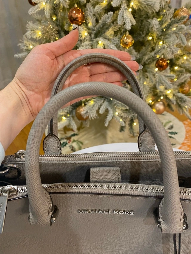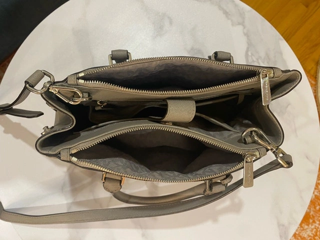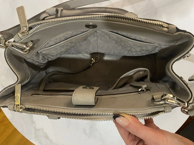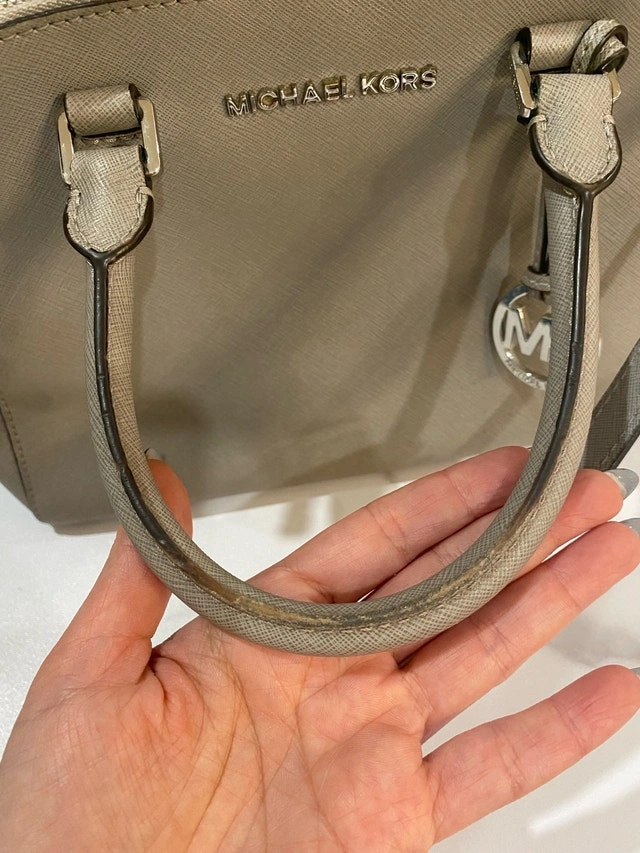 Used MK bag but still in great shape. Only real wear & tear is on the rubber of the handles, which I’ve included a photo of. Zippered pockets are very clean. Genuine MK with a photo of the serial number also attached.