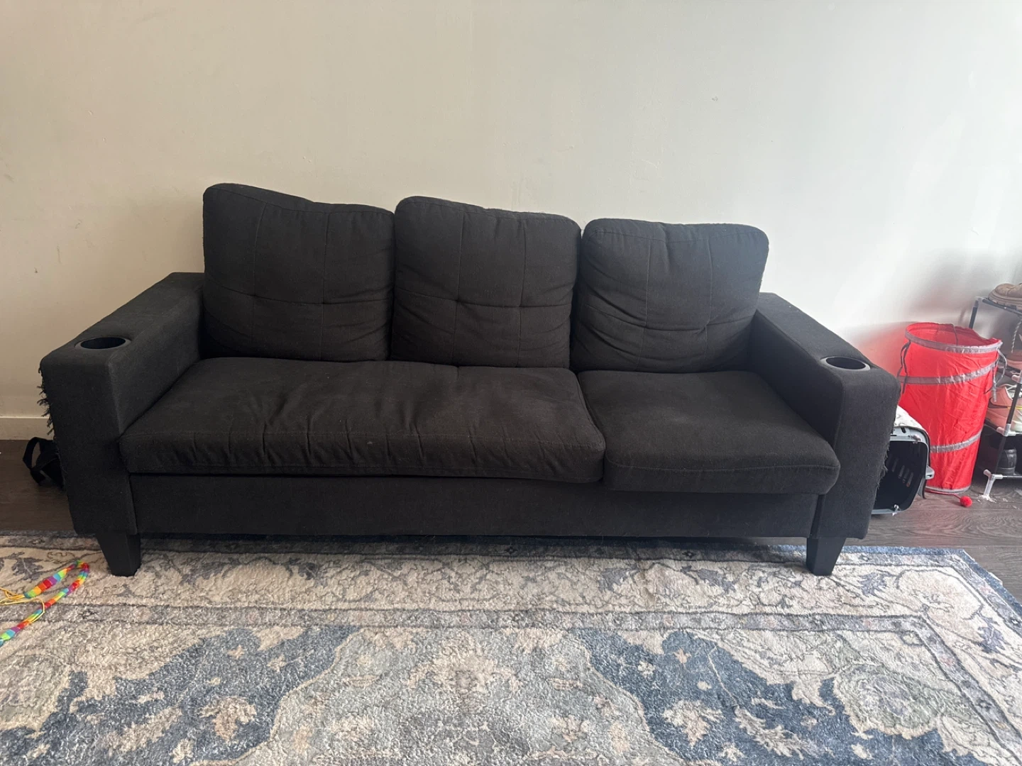 Dark Grey Sofa with Built-in Cup Holders