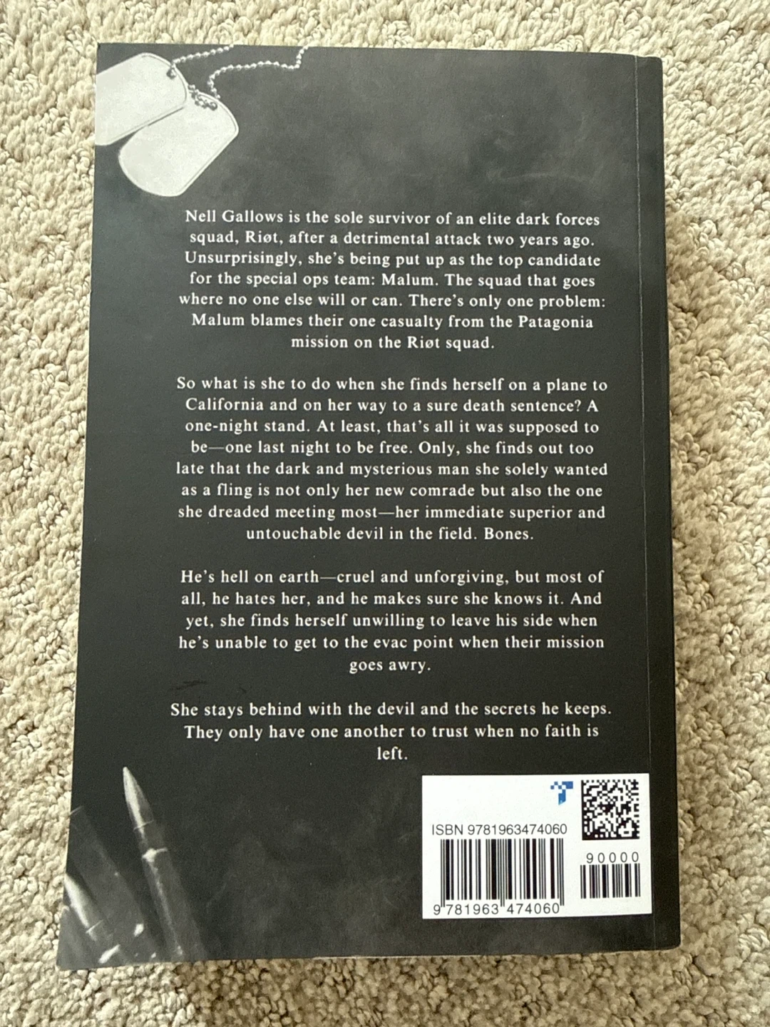 A dark military romance novel titled 'Leave Me Behind'. It follows Nell Gallows, a survivor of an elite dark forces squad. Nell finds herself on a plane to California with a mysterious new comrade, but things quickly escalate. She's the sole survivor of her squad and has only one other person to trust.
