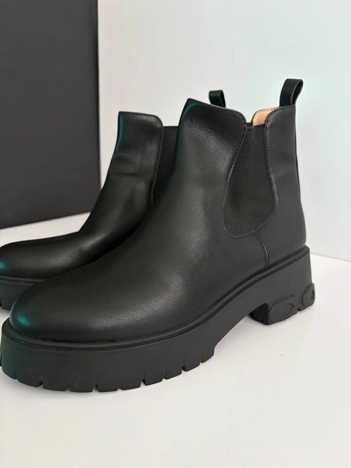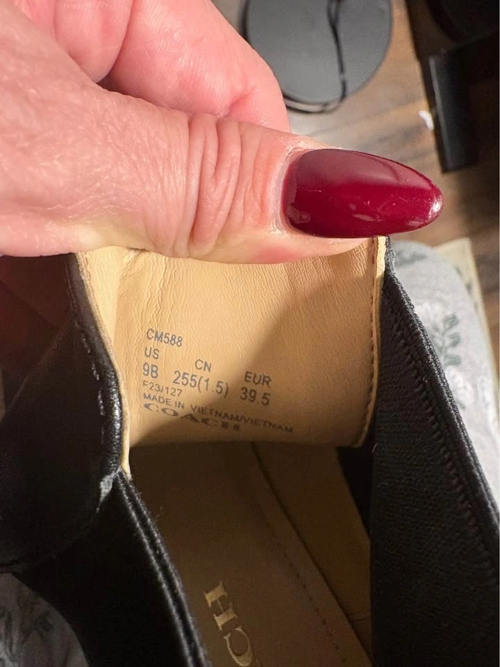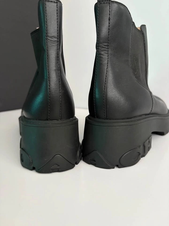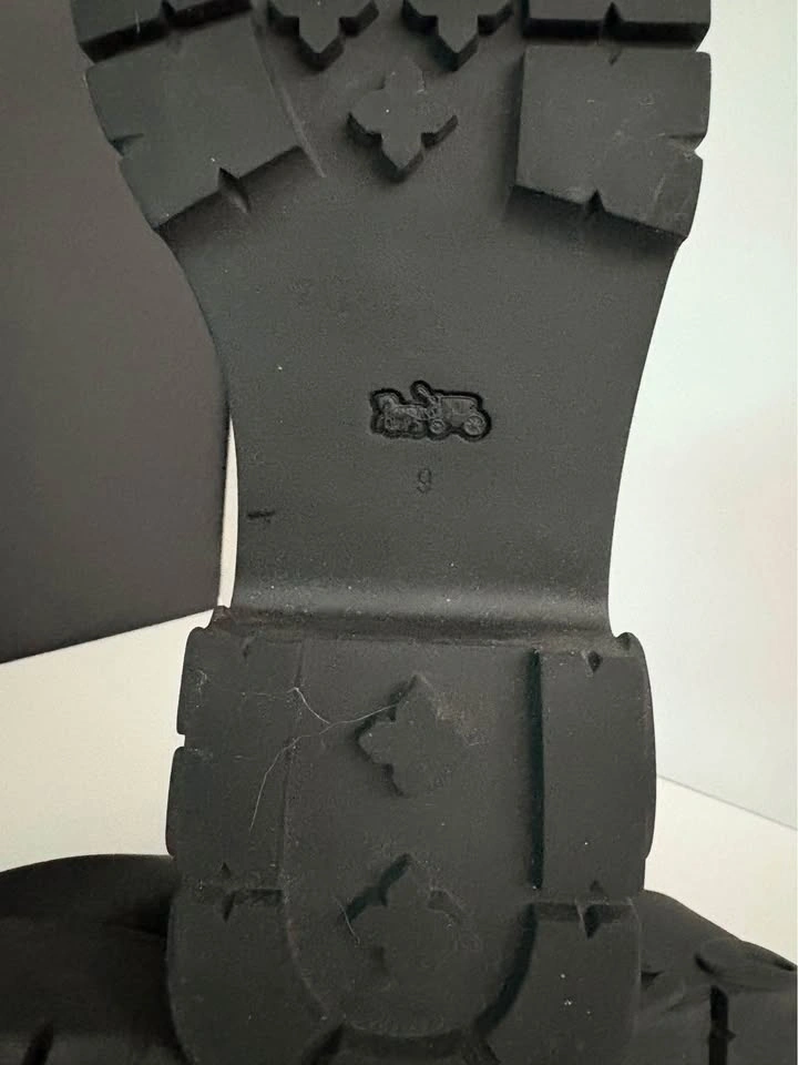 Open to reasonable offers. Authentic Coach Leah Chelsea Boots in black leather with a modern chunky lug sole. Classic, timeless style with a trendy edge — easy to dress up or down. Details: • Women’s Size 9 • Genuine black leather • Chelsea pull-on style • Chunky / lug sole • Coach logo on outsole • Style code: CM568 • Made in Vietnam. Condition: Excellent, lightly worn (very clean – see photos). Original retail: approx. $495–$550 CAD at Coach. From a smoke-free home. Pickup in Hamilton. During the day I Dundas. Cash or e-transfer.