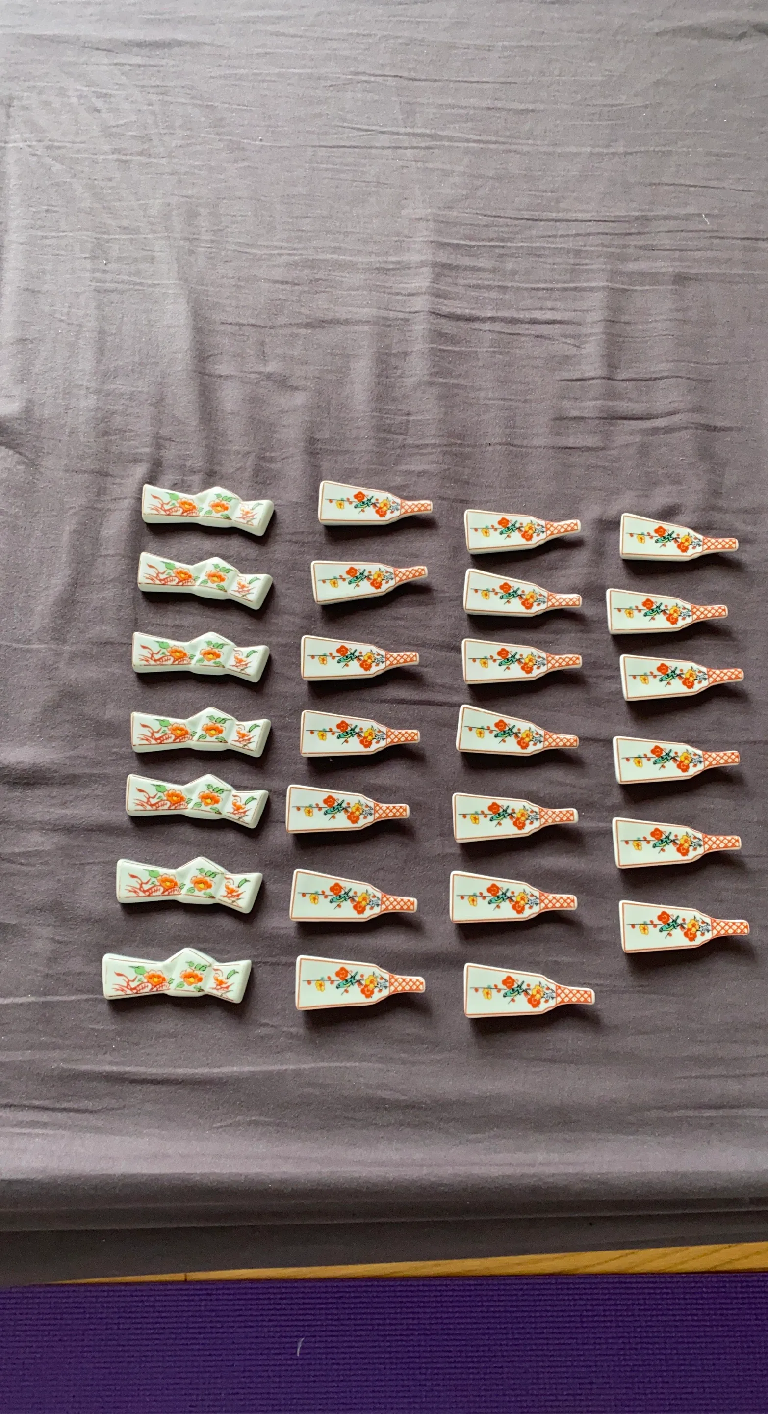 These are 27 pieces ceramic chopstick rests. Each rest features a delicate floral pattern. They're perfect for keeping your chopsticks clean and off the table.