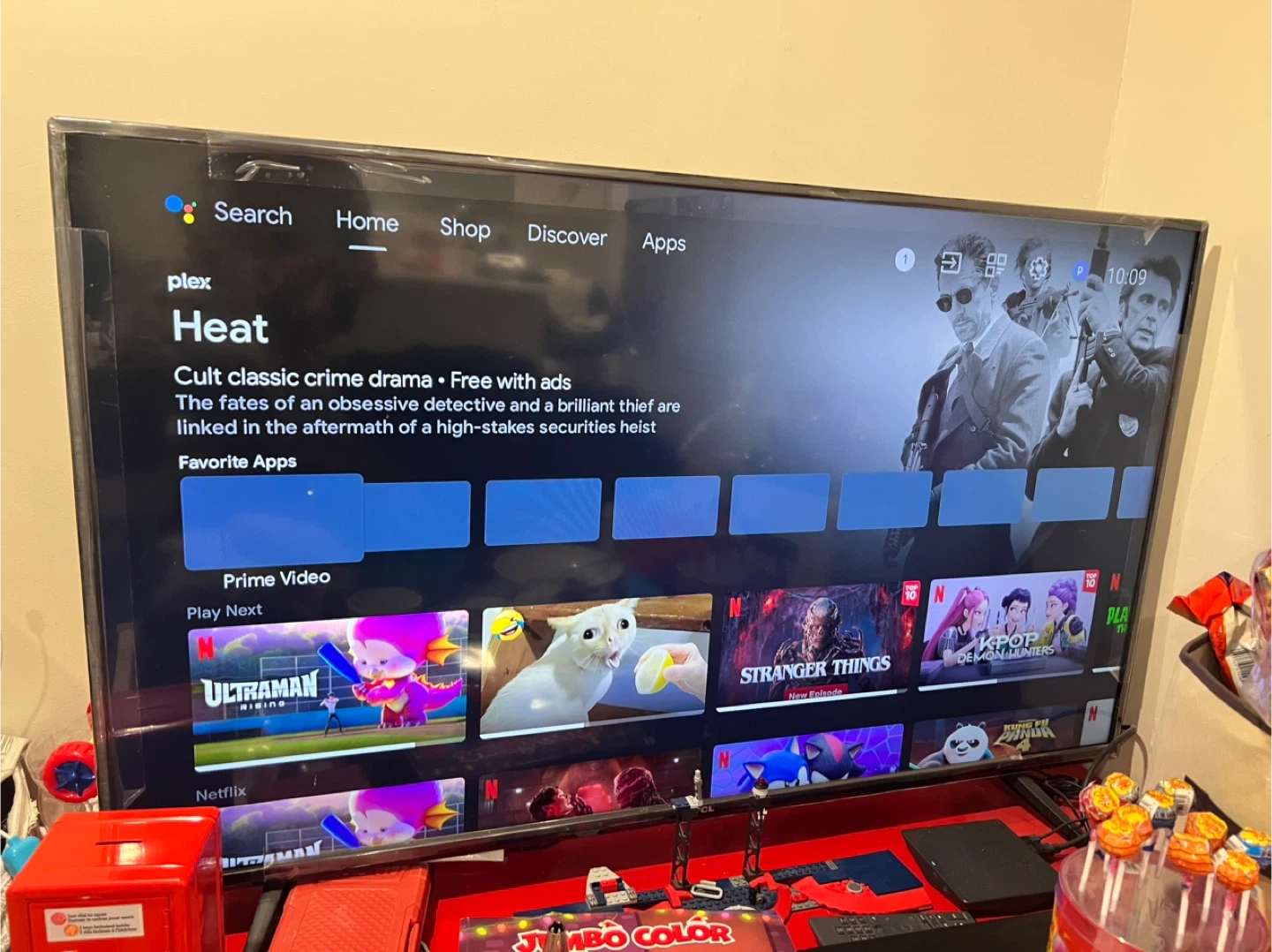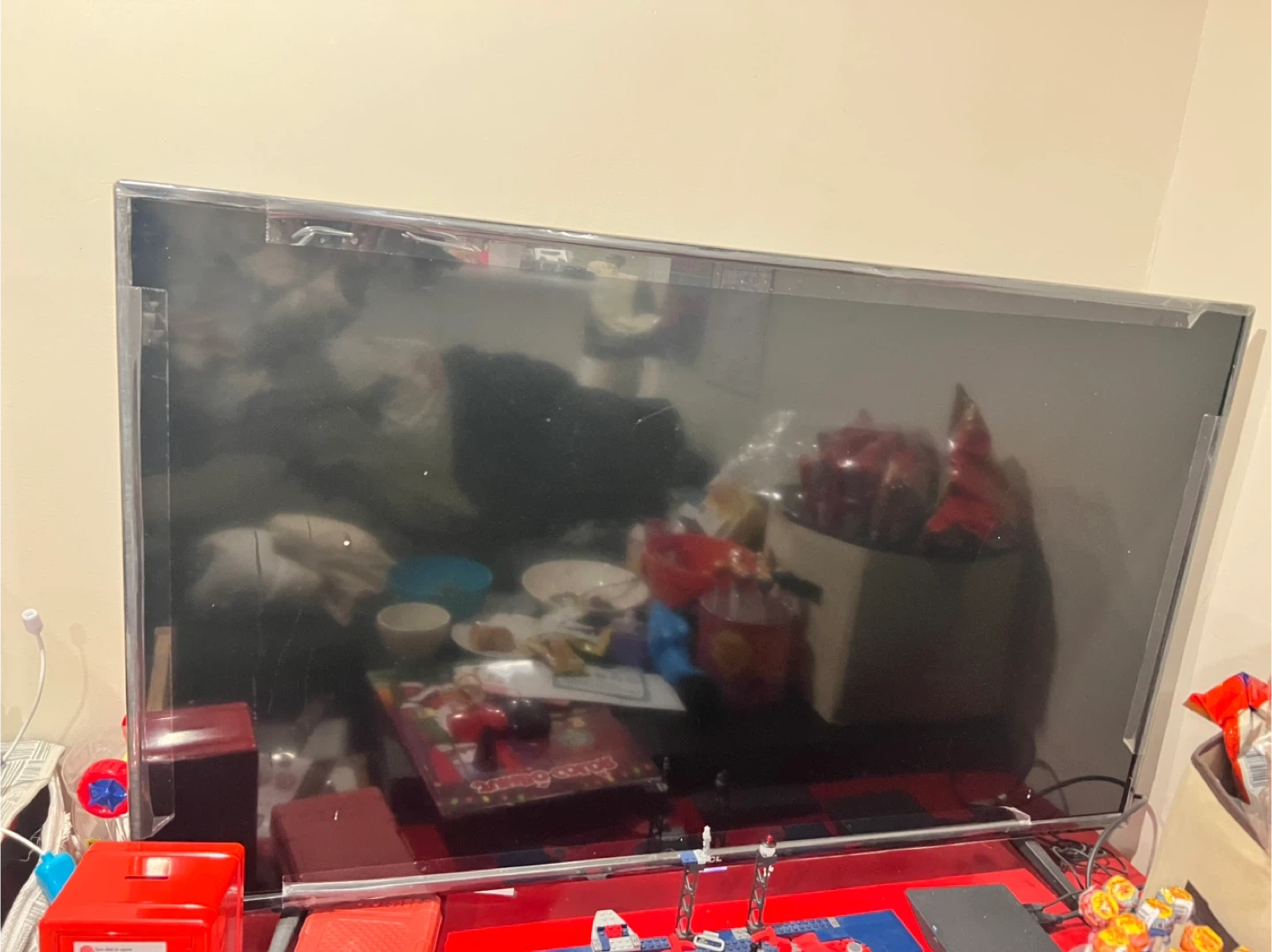 This is a 50-inch TCL smart TV. It's a flat-screen model with a sleek black finish. The TV comes with its original stand and power cord. It's perfect for watching movies or playing video games!