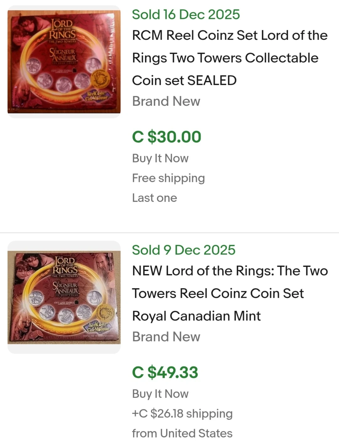 Lord of the Rings: Two Towers Reel Coins Collection MINT SEALED