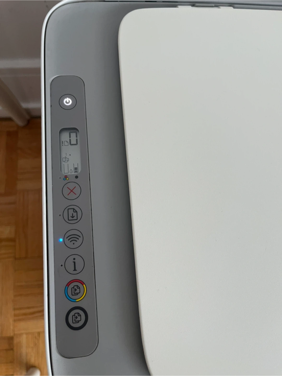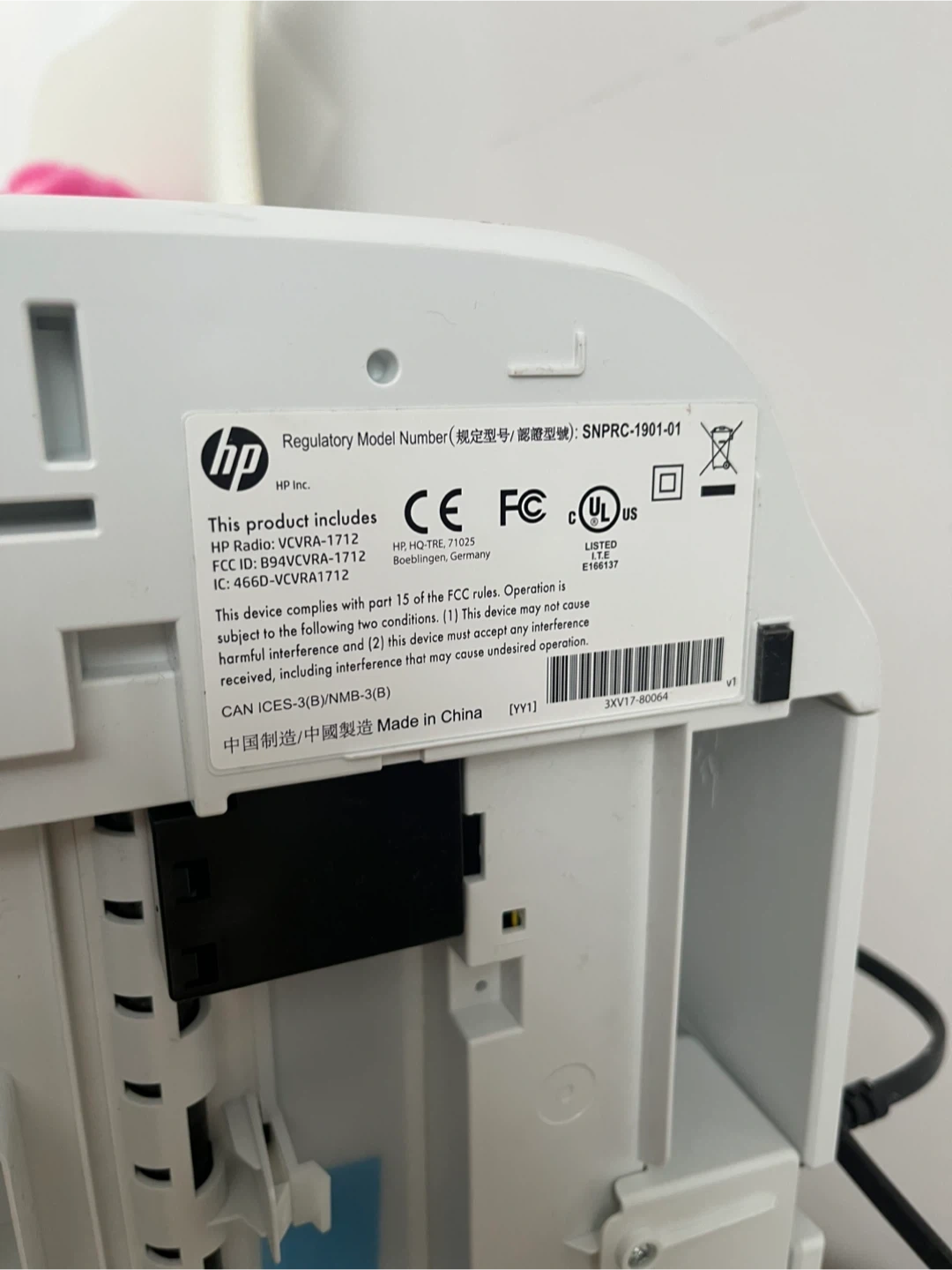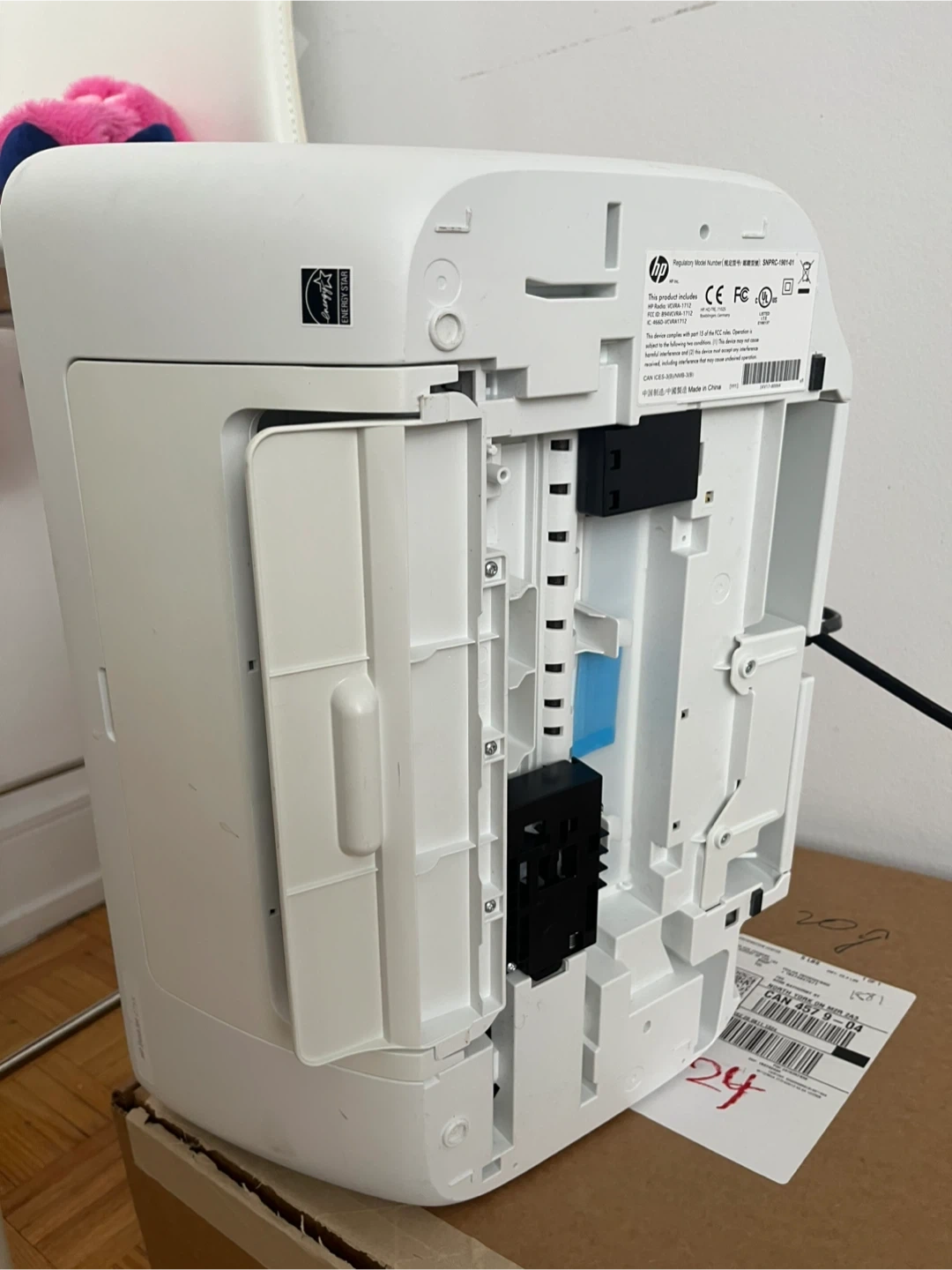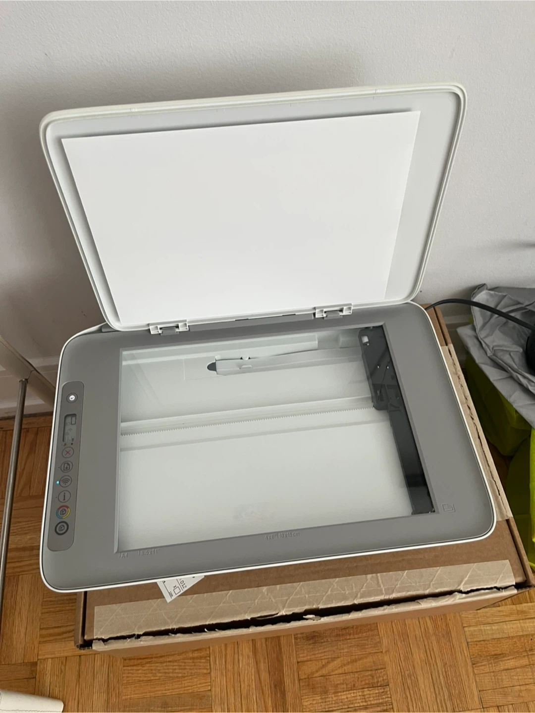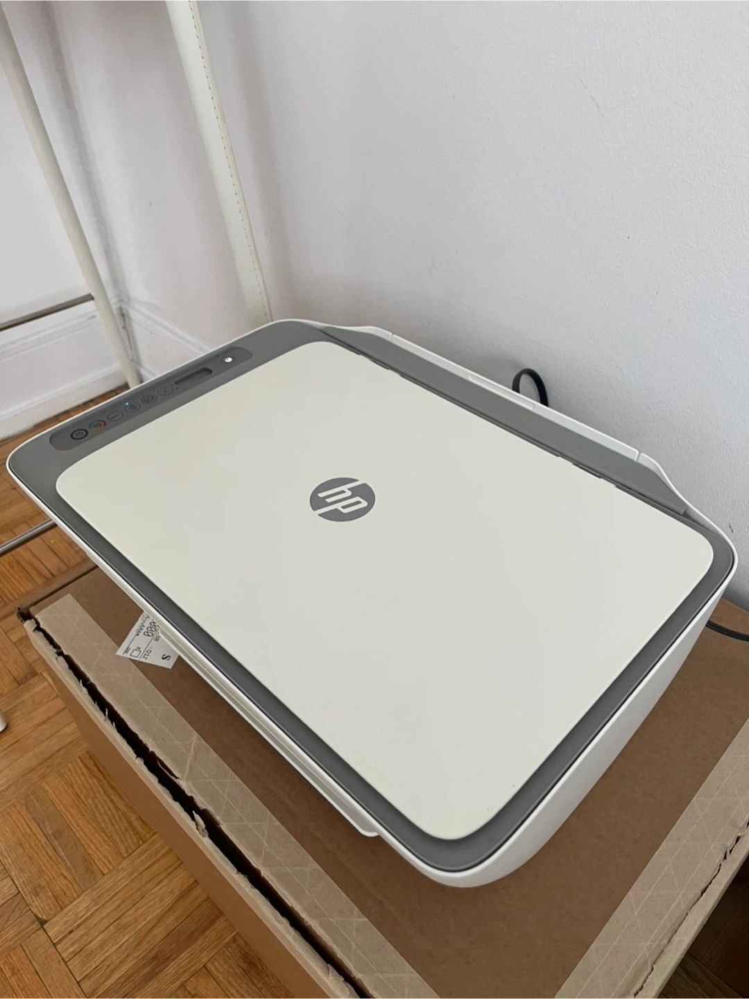 This HP DeskJet 2755 is an all-in-one printer, scanner, and copier. It's white and grey with a compact design. Connects via Wi-Fi. Perfect for home offices! Very good condition!