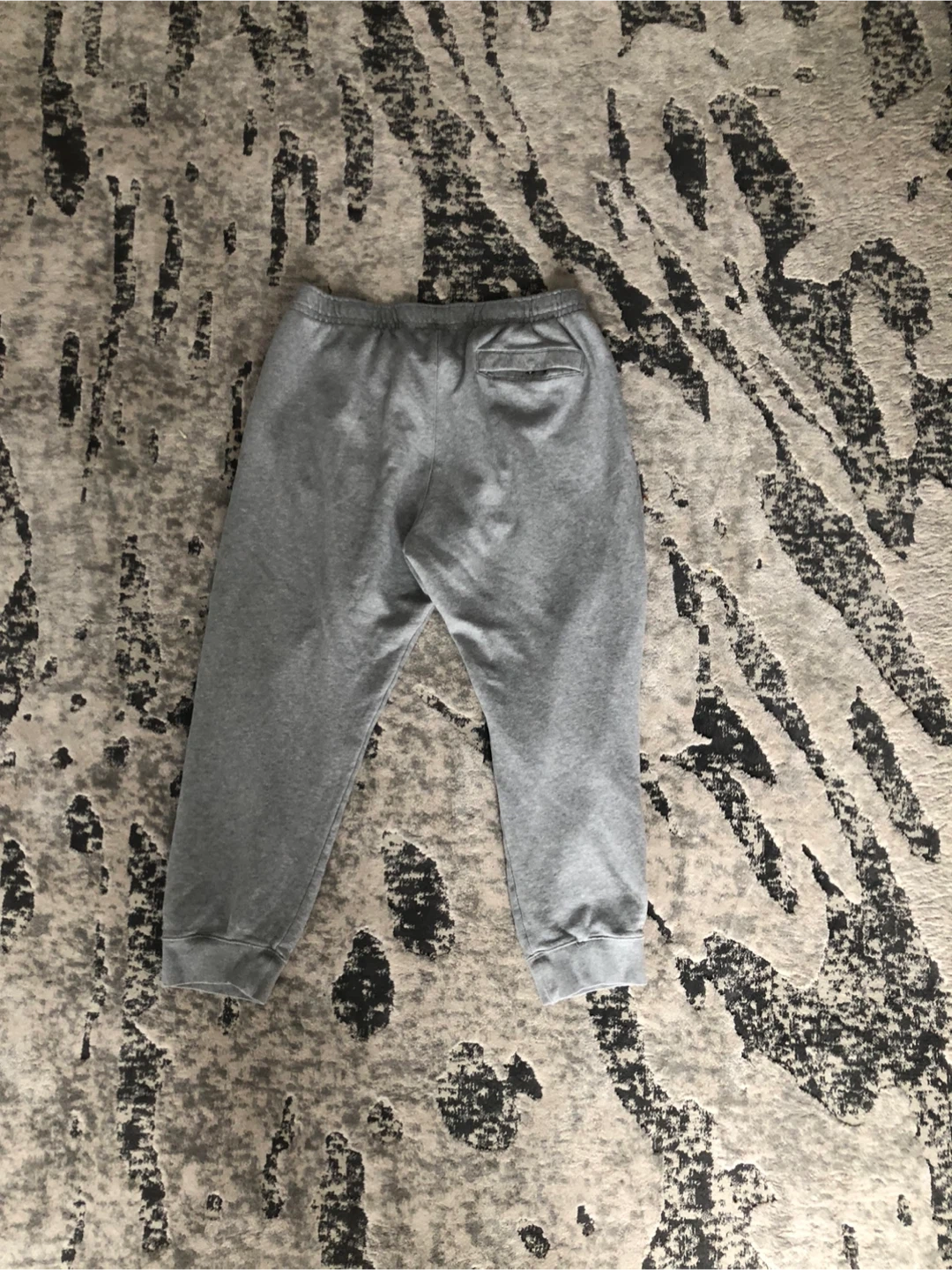 Comfortable grey sweatpants by Nike. Made from a soft, breathable fabric, they're perfect for lounging or casual wear. Elastic waistband and cuffs provide a snug fit. Small stain