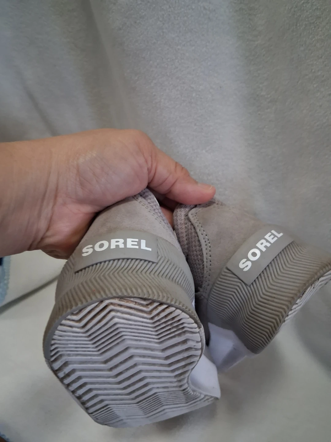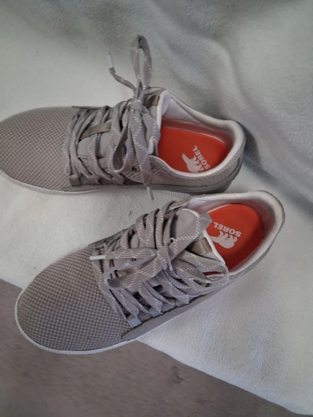 Sorel sneakers in a light grey colour. These waterproof shoes are a women's size 6 (UK 4, EUR 37, CM 23).